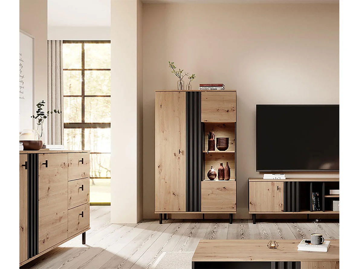 VITRINE Madis sand grange eiche / anthrazit 90,1cm / 40 cm / 148,8 cm