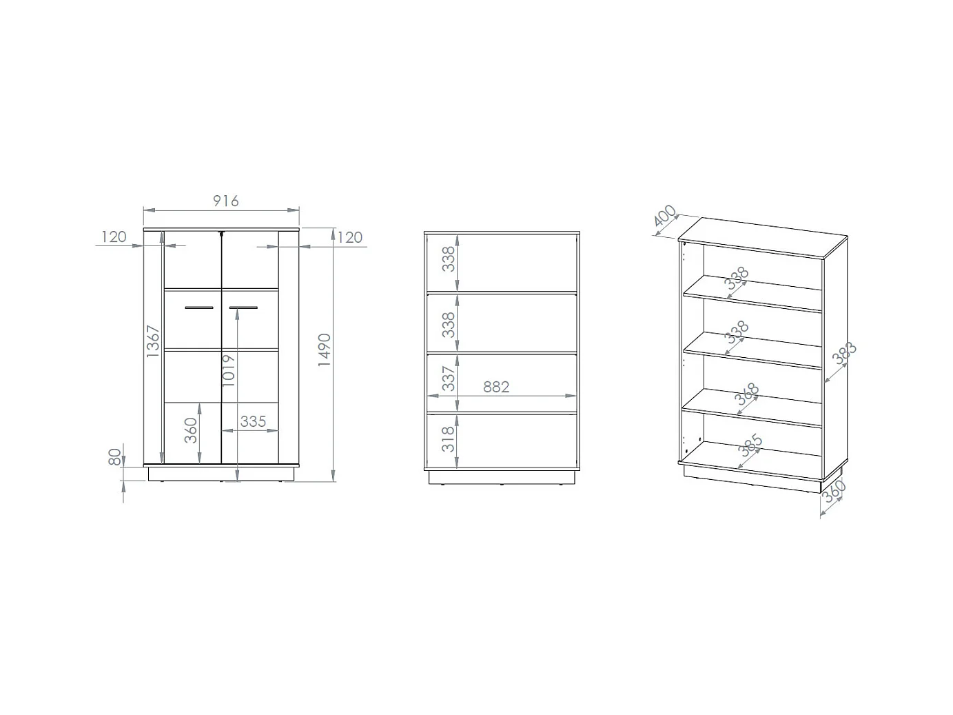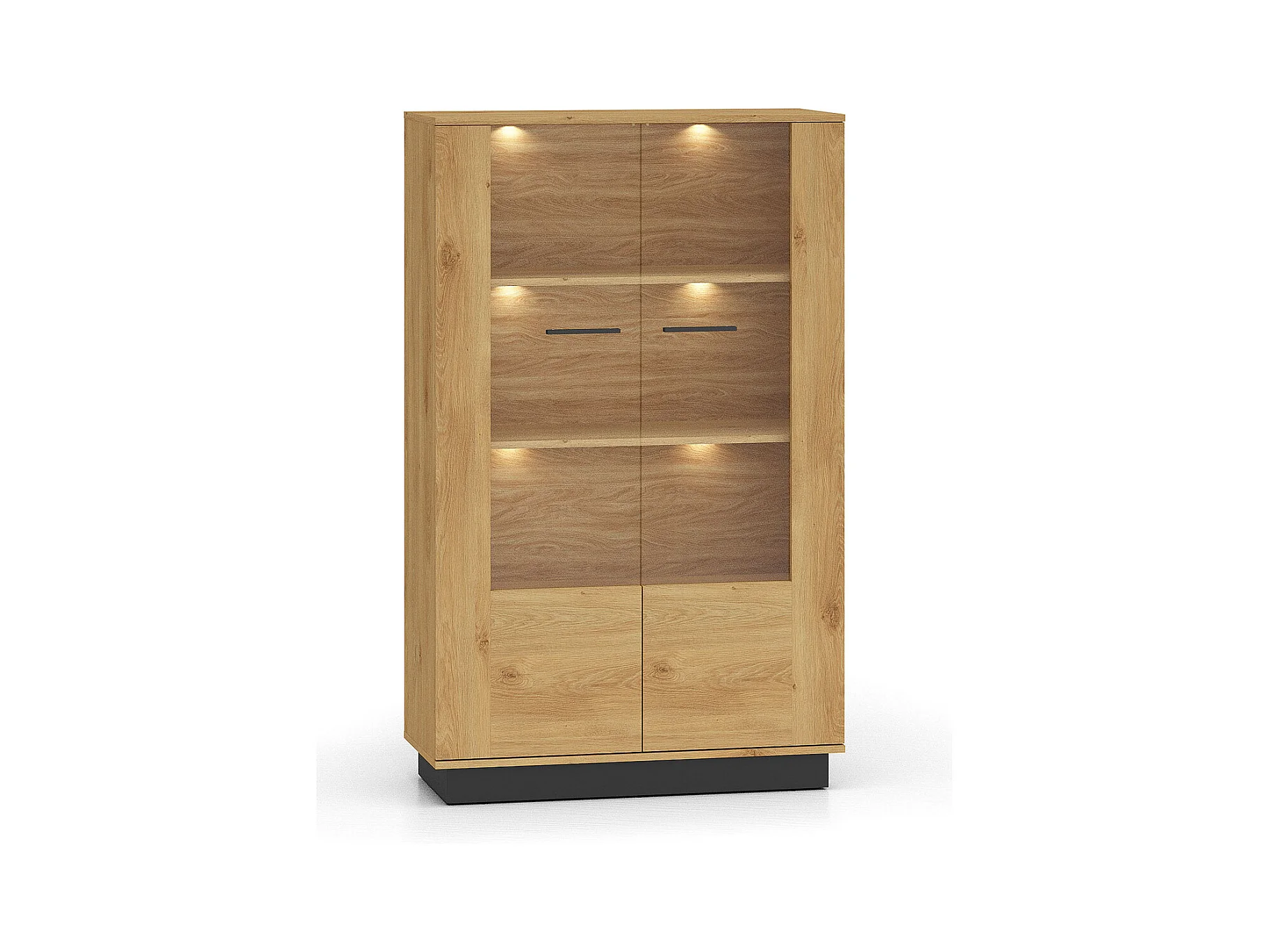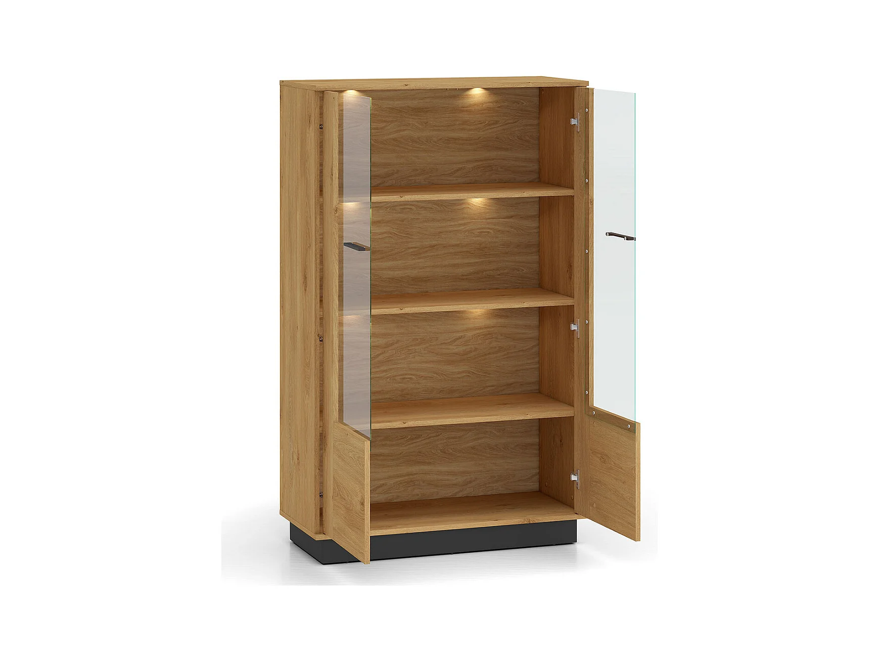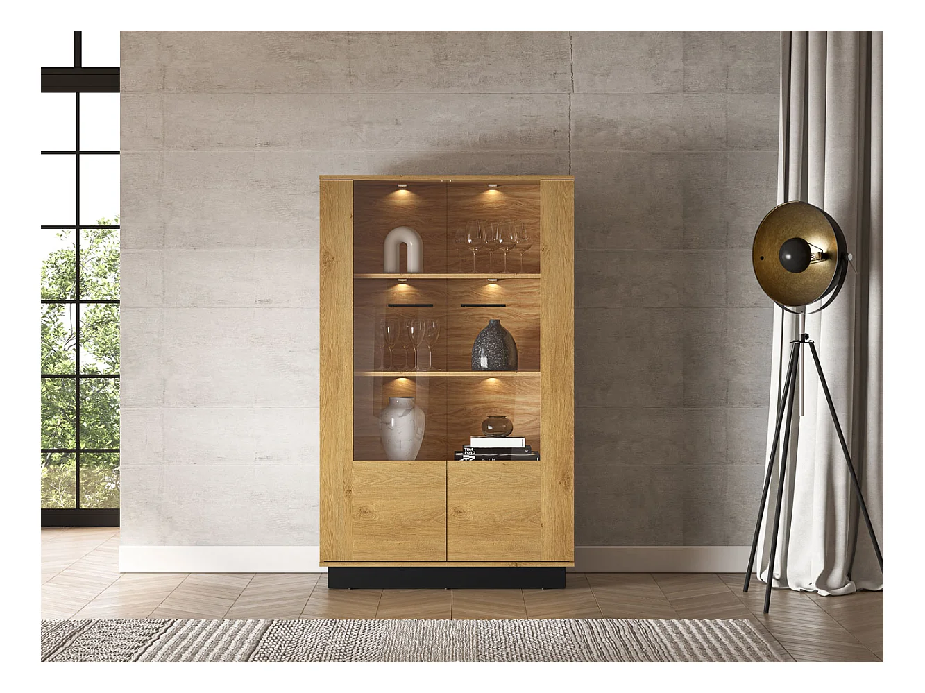 VITRINE Modesto Eiche Style hell / Schwarz 92 / 40 / 149 cm
