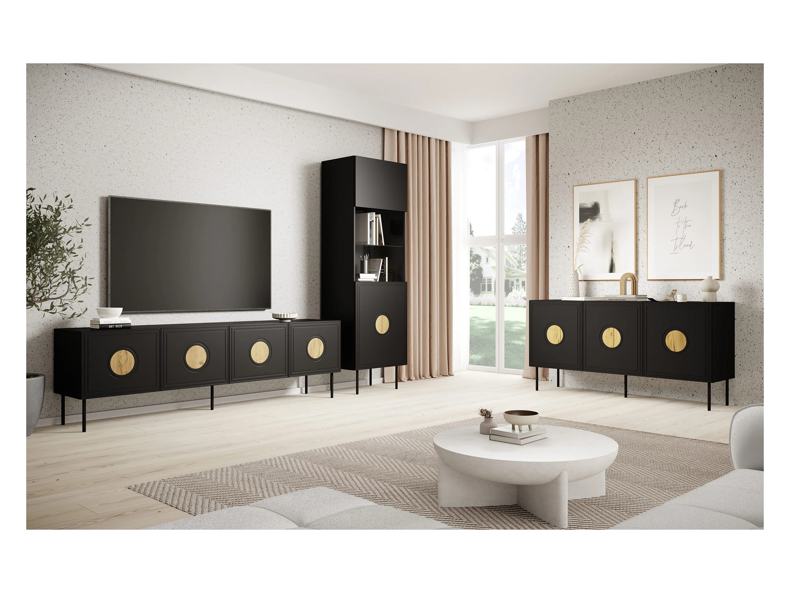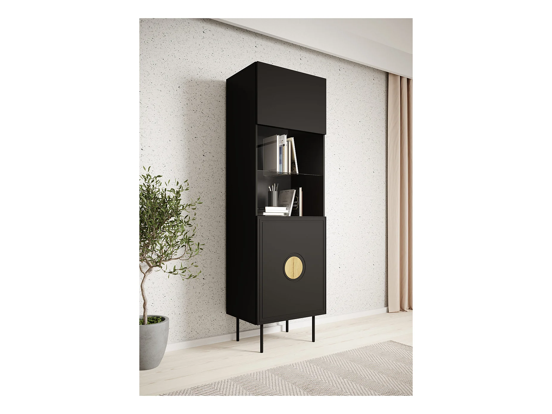 Vitrine PALACE 60 cm 1D Schwarz matt / Craft Eiche