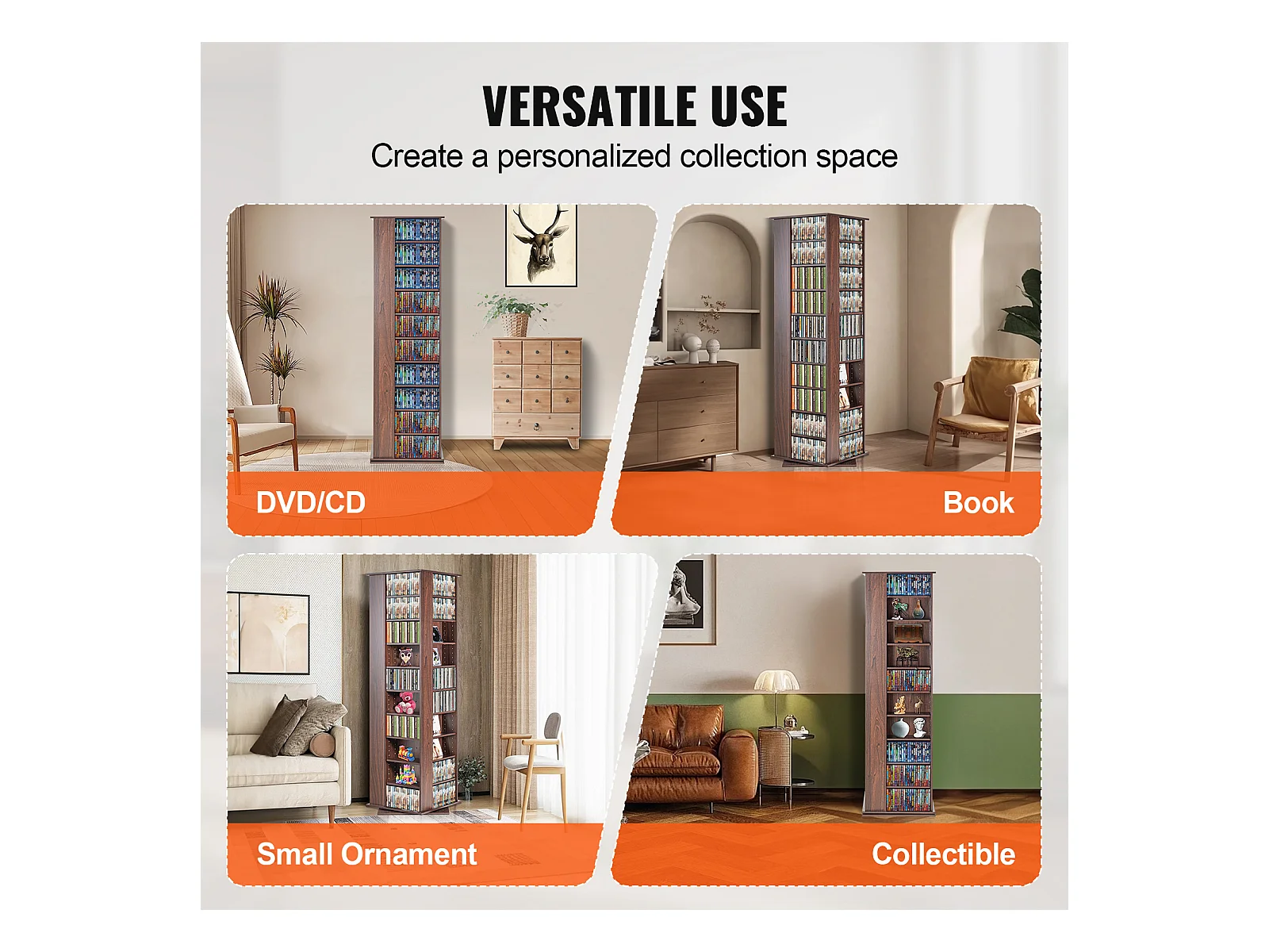 Vitrine, SucceBuy 4-seitig Drehbarer Medienturm, für Bis zu 1 040 CDs, Espresso-Finish