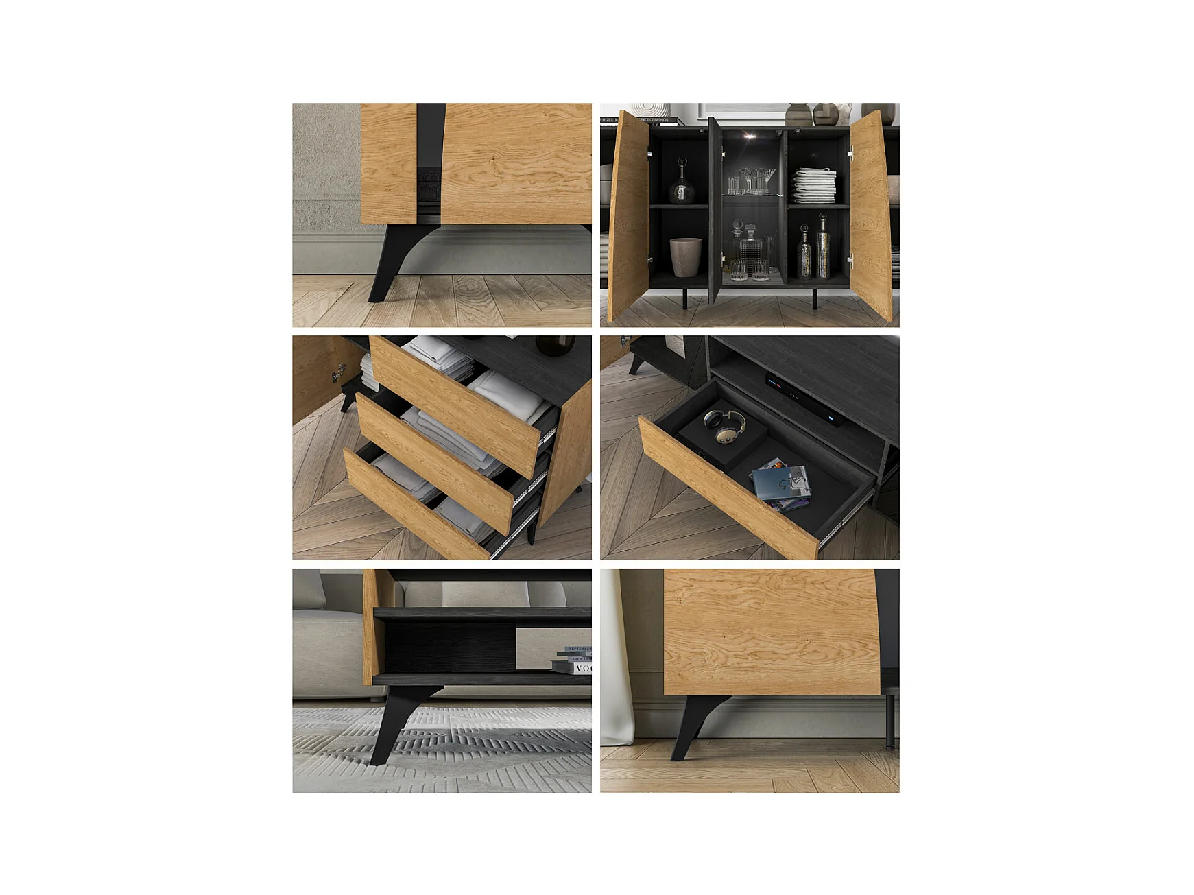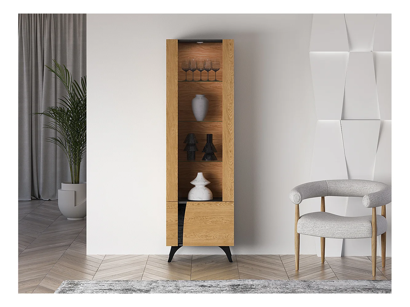 VITRINE Toscania Eiche / Schwarz 58 / 40 / 190cm