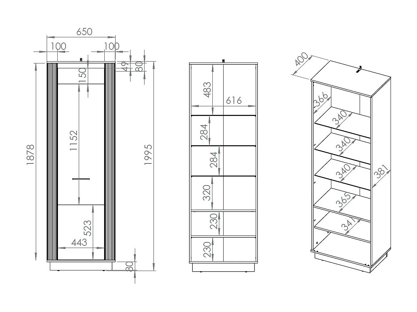 VITRINE Urso Gold Craft Eiche / Schwarz 65 / 40 / 200 cm