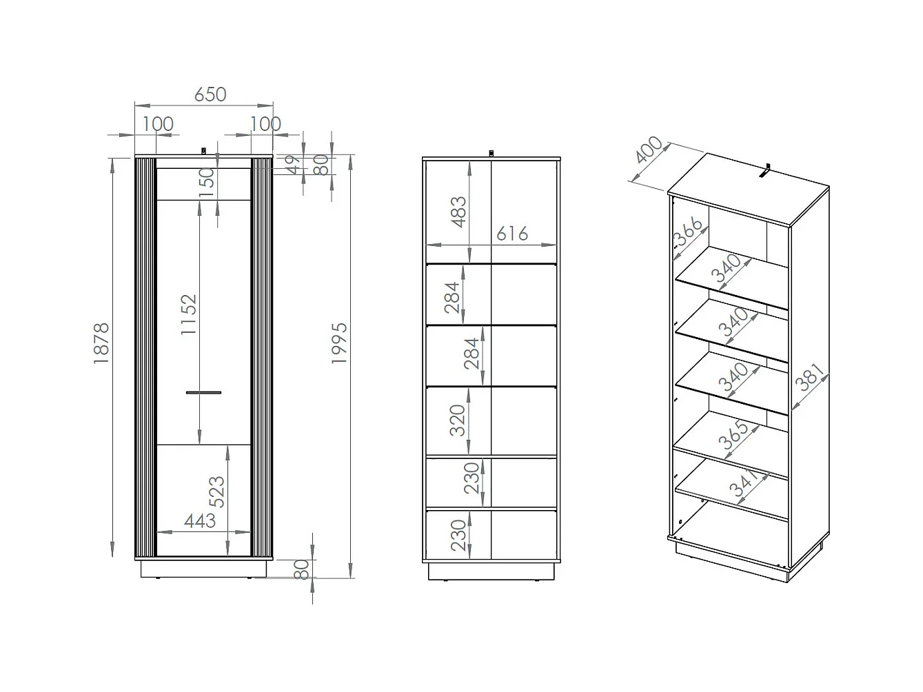 VITRINE Urso Gold Craft Eiche / Schwarz 65 / 40 / 200 cm