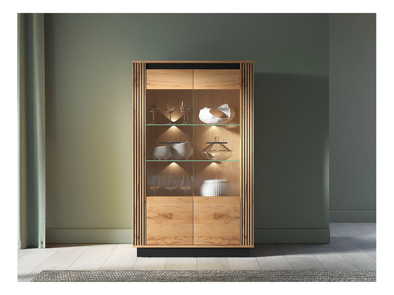 VITRINE Urso Gold Craft Eiche / Schwarz 92 / 40 / 141 cm