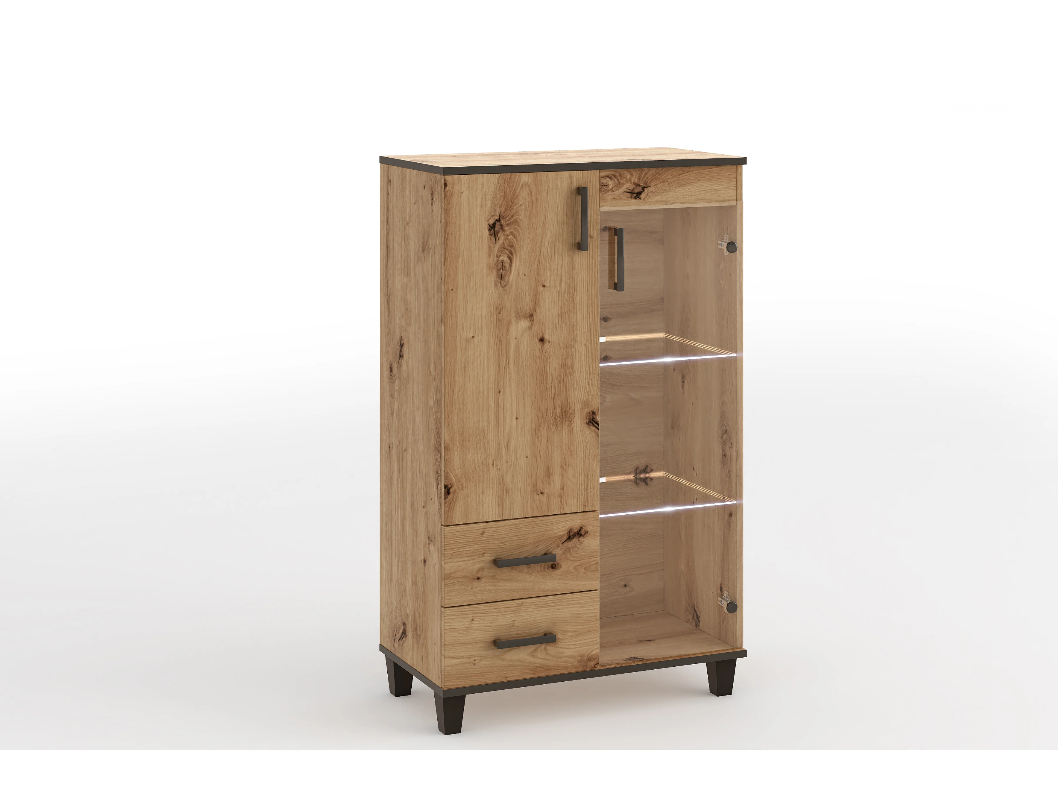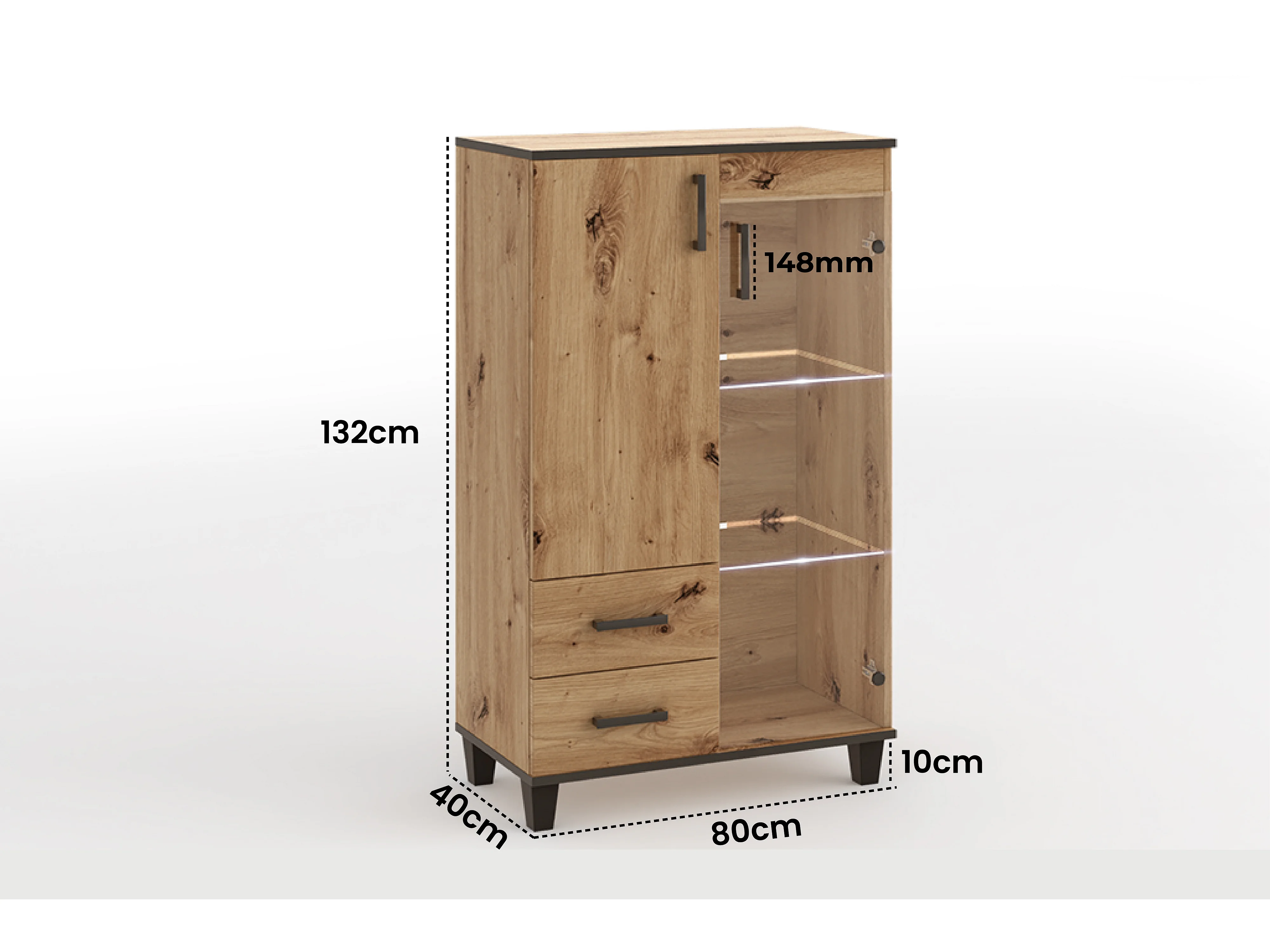 Vitrine Vanessa III Glas Bar Schrank Regal Holz Möbel Wohnzimmer Glastür mit Holzbeine Standvitrine Wohnzimmerschrank