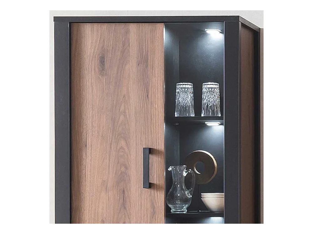 Vitrine Wohnzimmer offene Fächer und Türen Nussbaumfarben & Schwarz