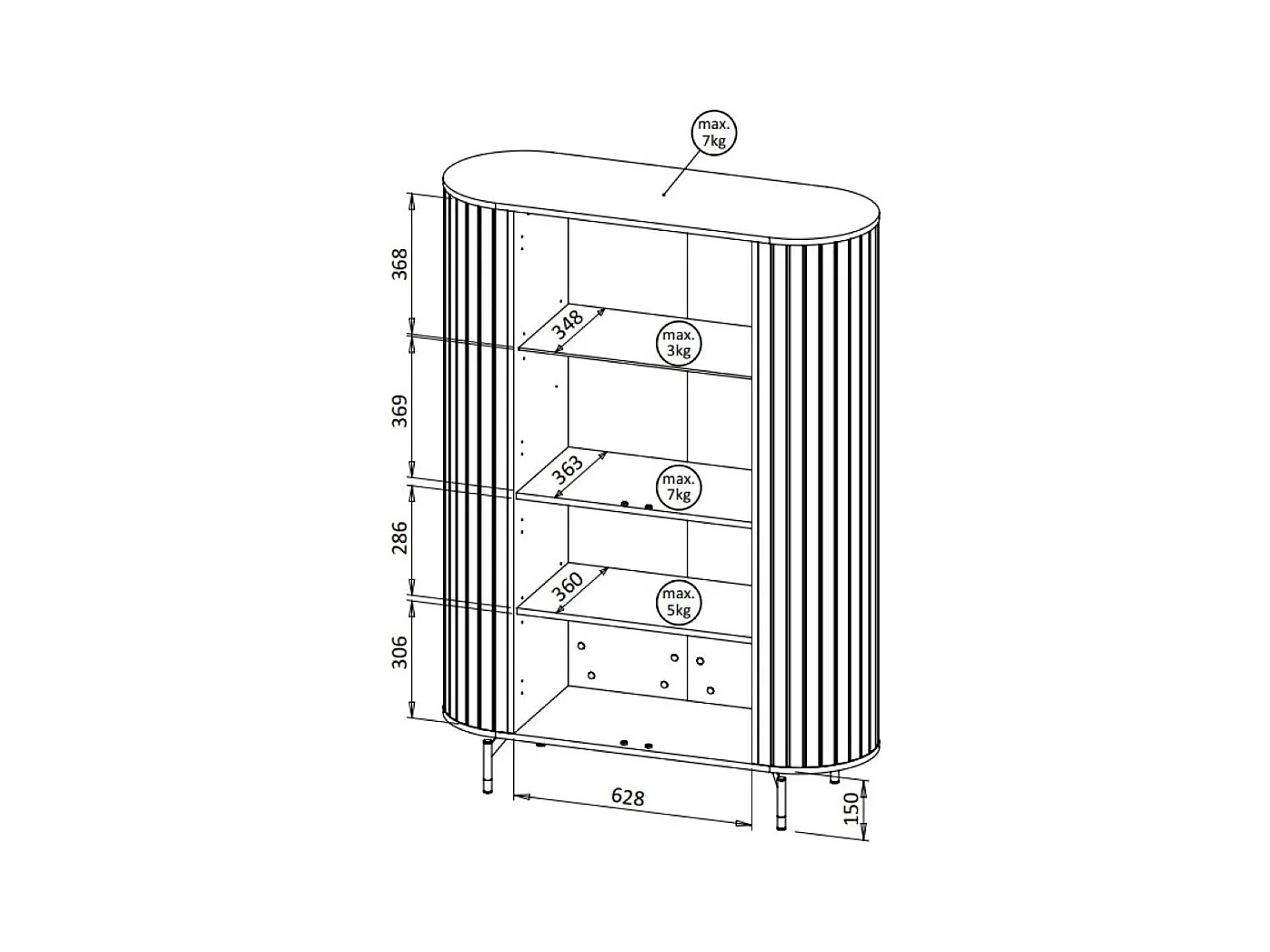 VITRINE Zama Kaschmir 112 / 40 / 155 cm mit Beleuchtung