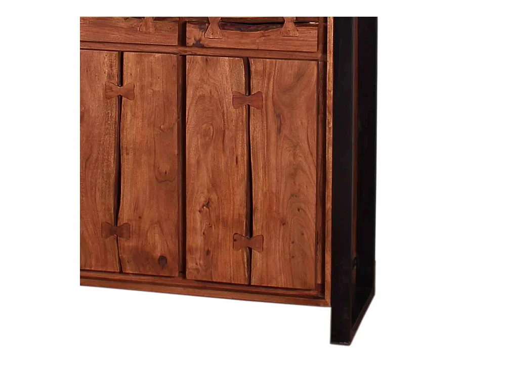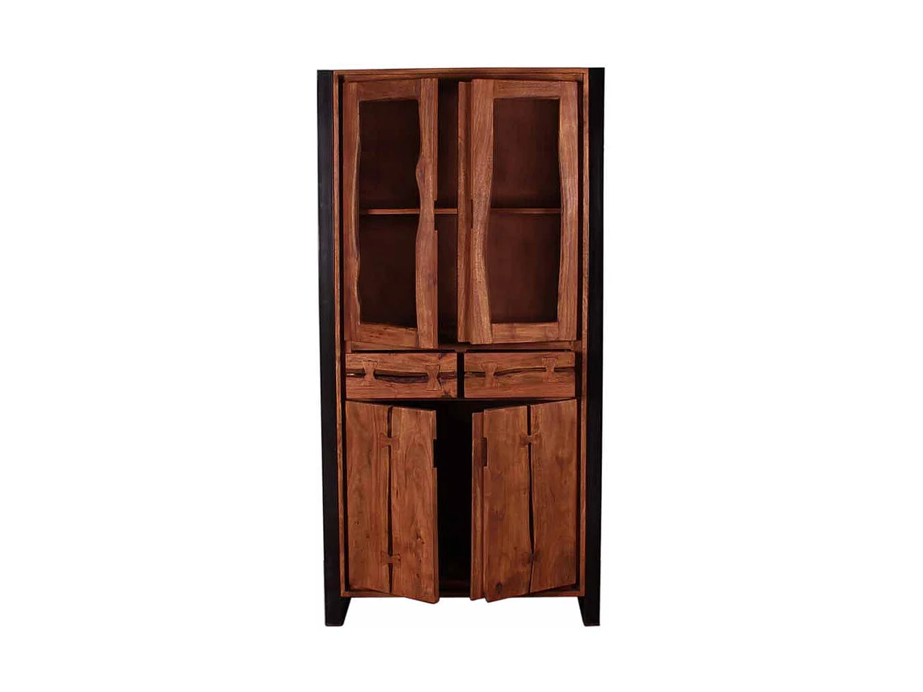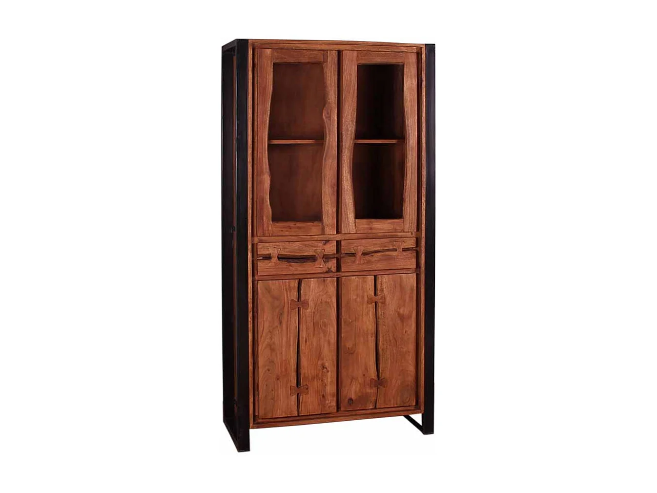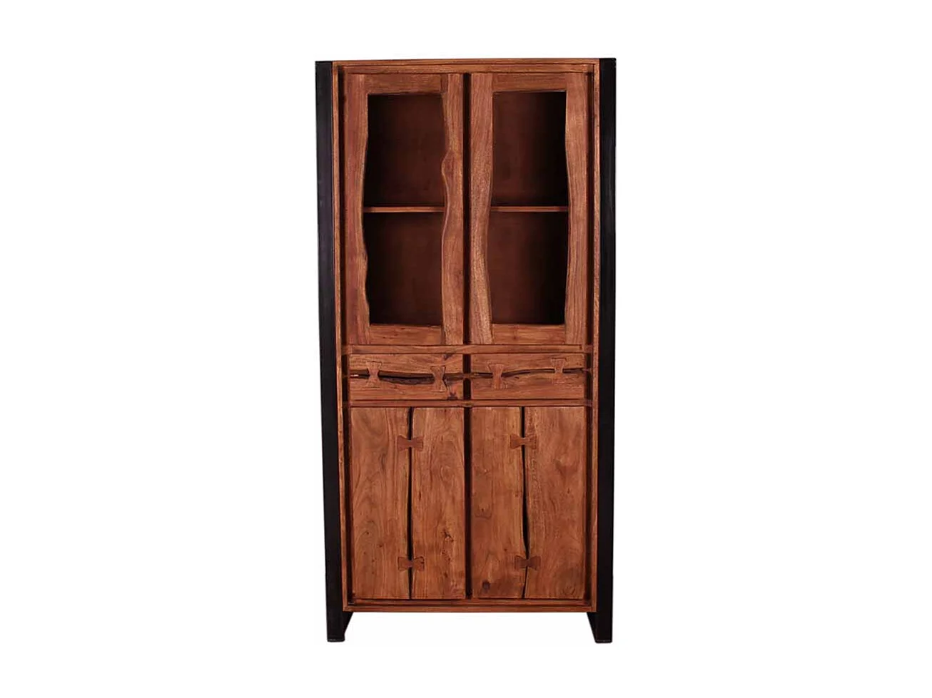 Vitrinenschrank aus Akazie Massivholz Schwarz Metall