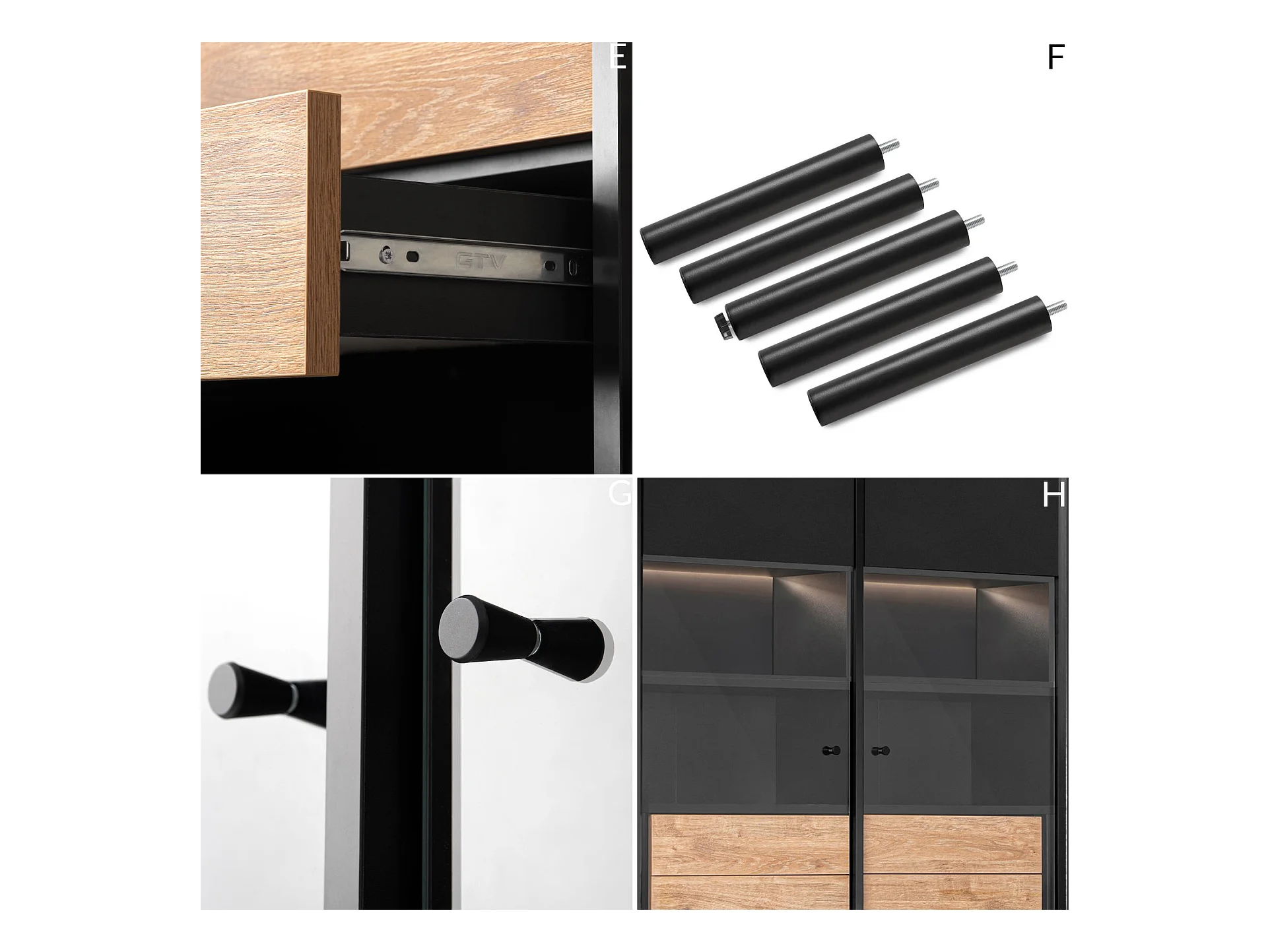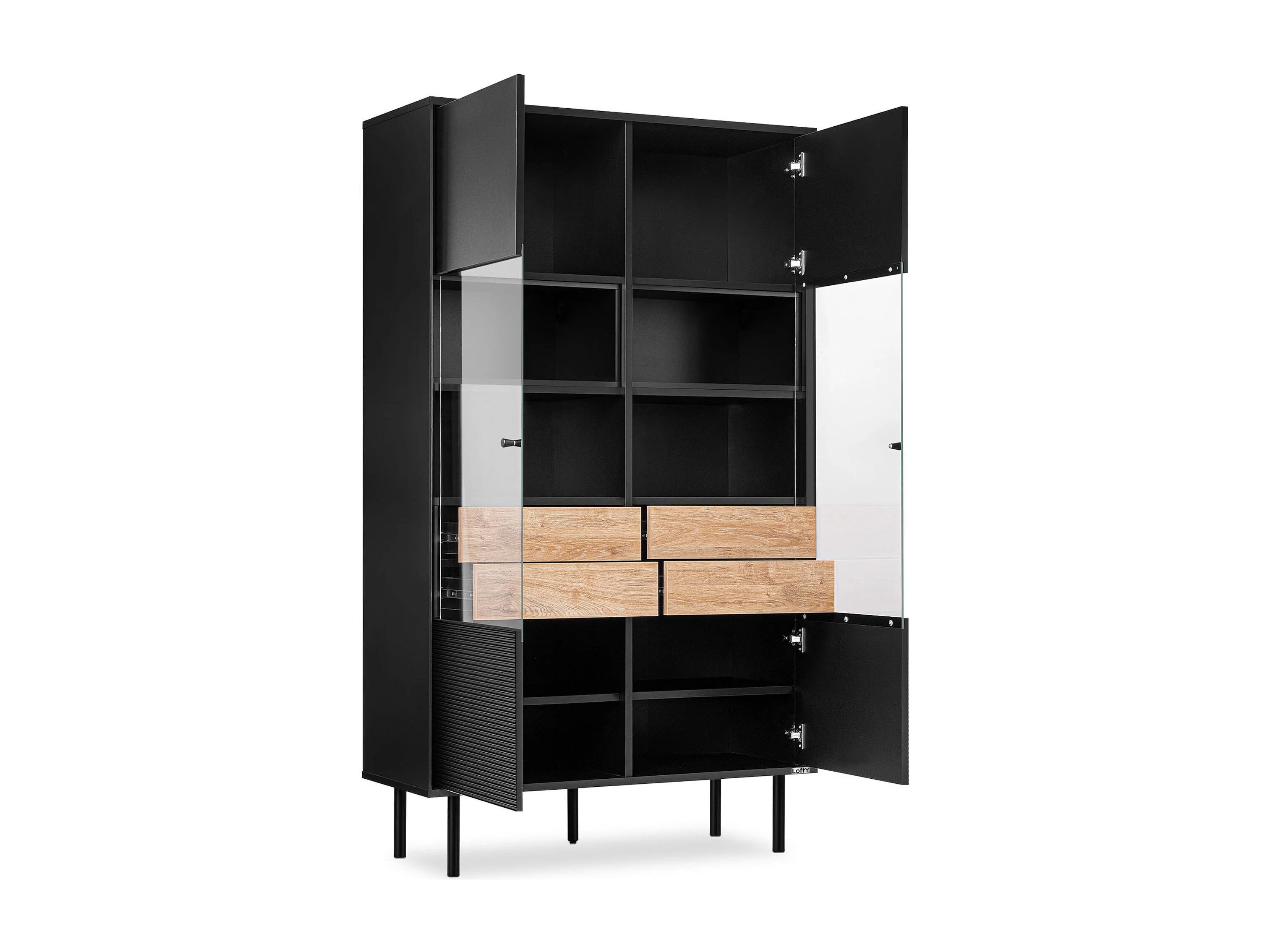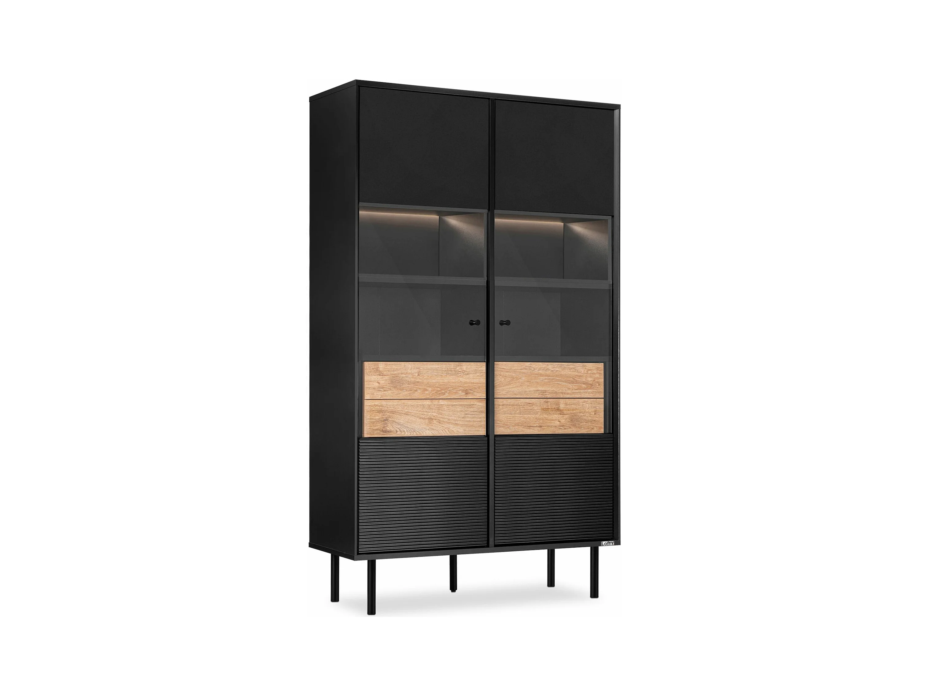 Vitrinenschränk Außenseiteneinlage - schwarz / Eiche natur - LOFTY