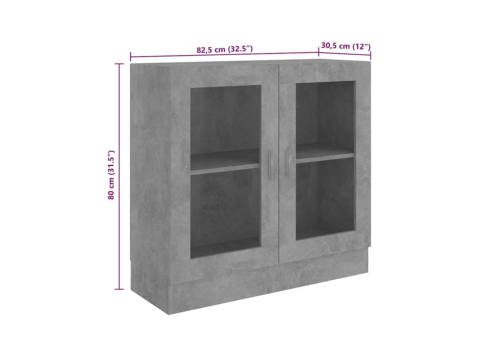 Vitrinenschrank Betongrau 82,5x30,5x80 cm Holzwerkstoff