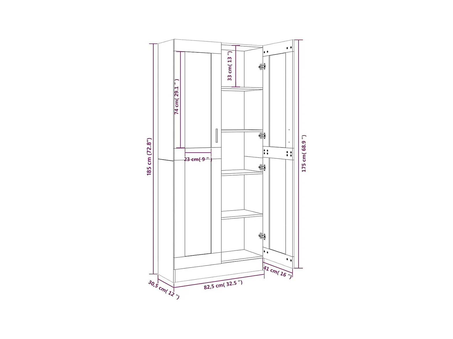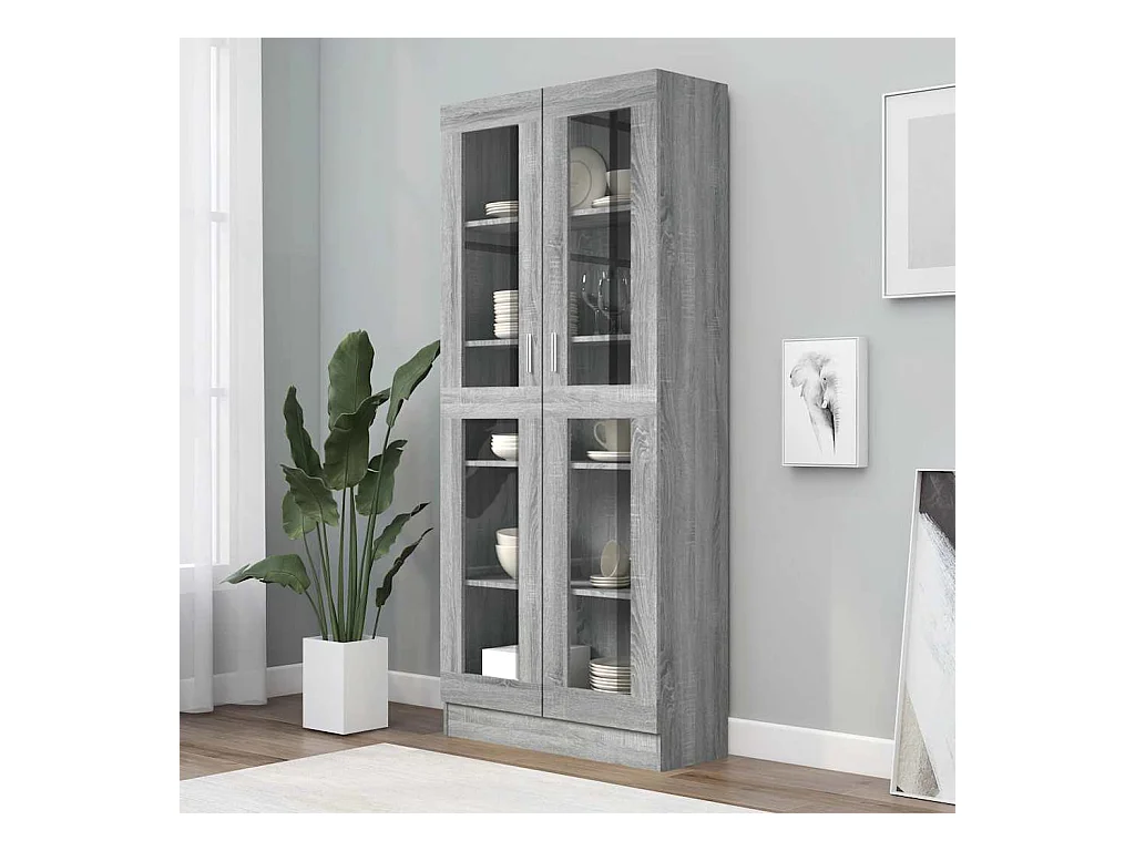 Vitrinenschrank Grau Sonoma 82,5x30,5x185,5 cm Holzwerkstoff