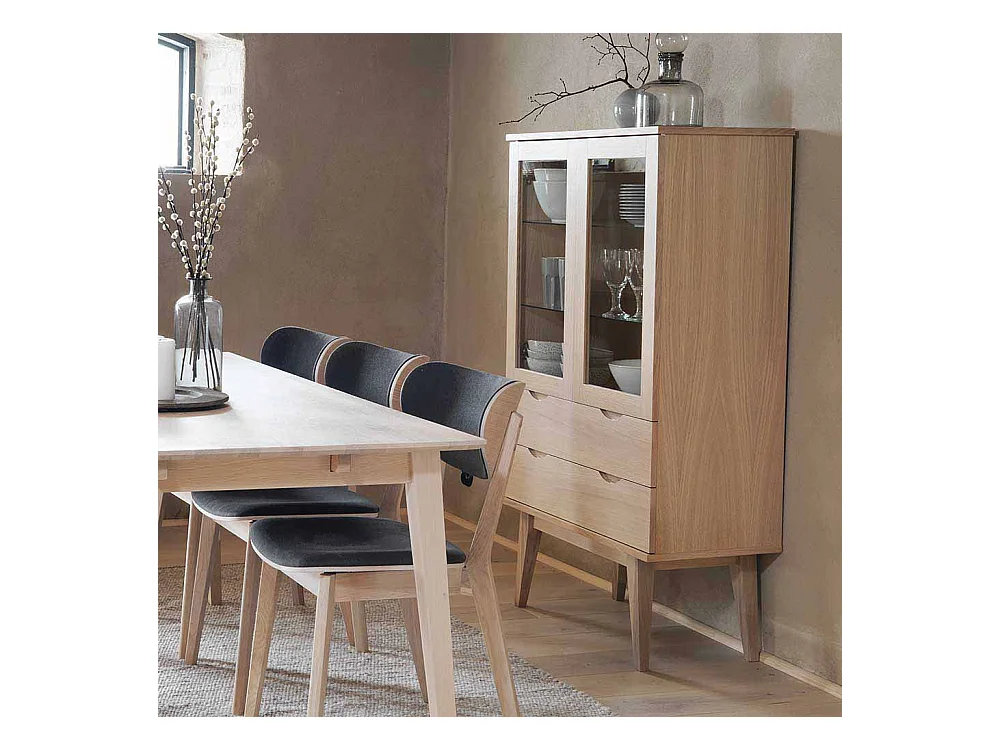 Vitrinenschrank in Eiche White Wash 140 cm hoch