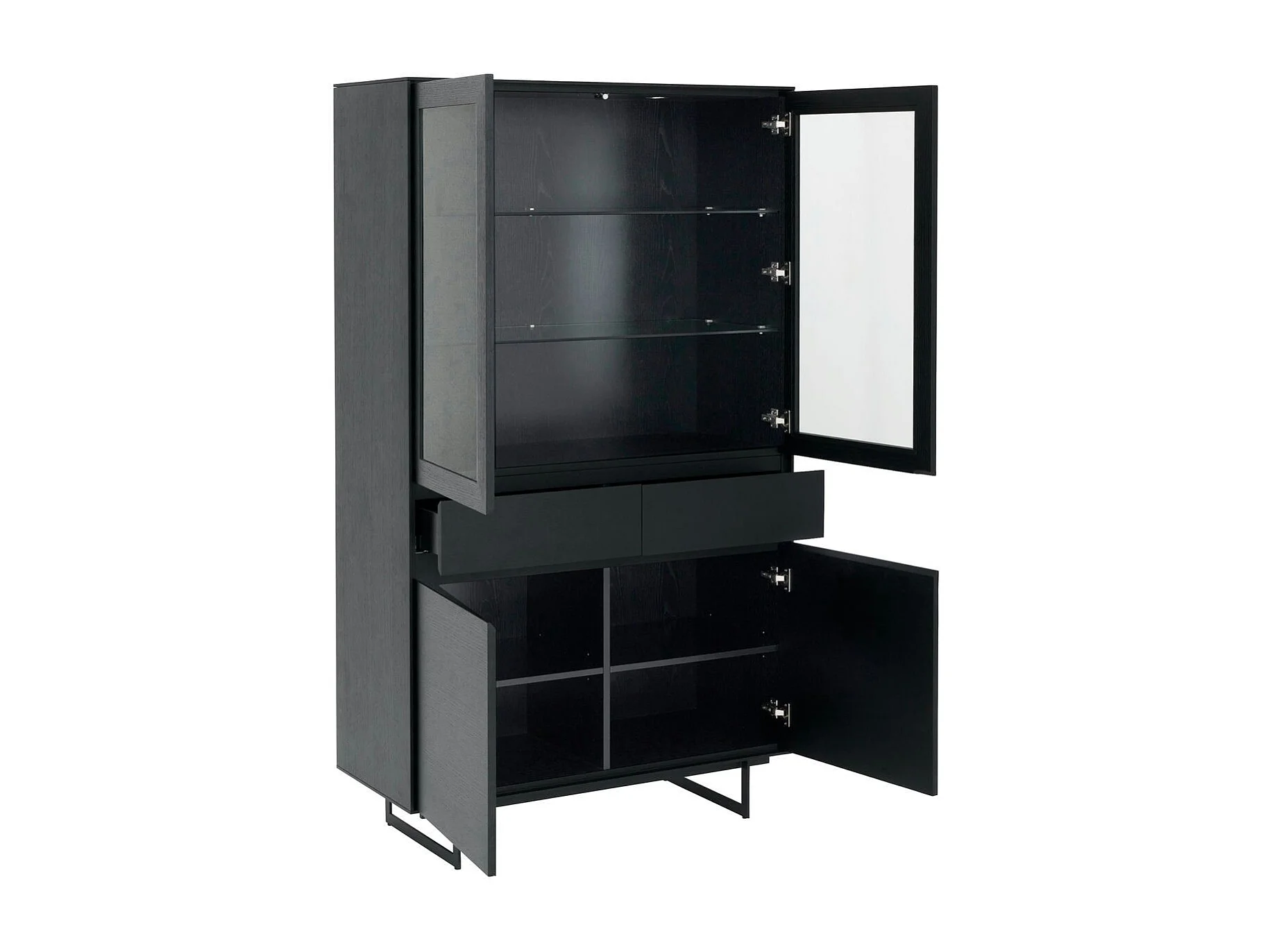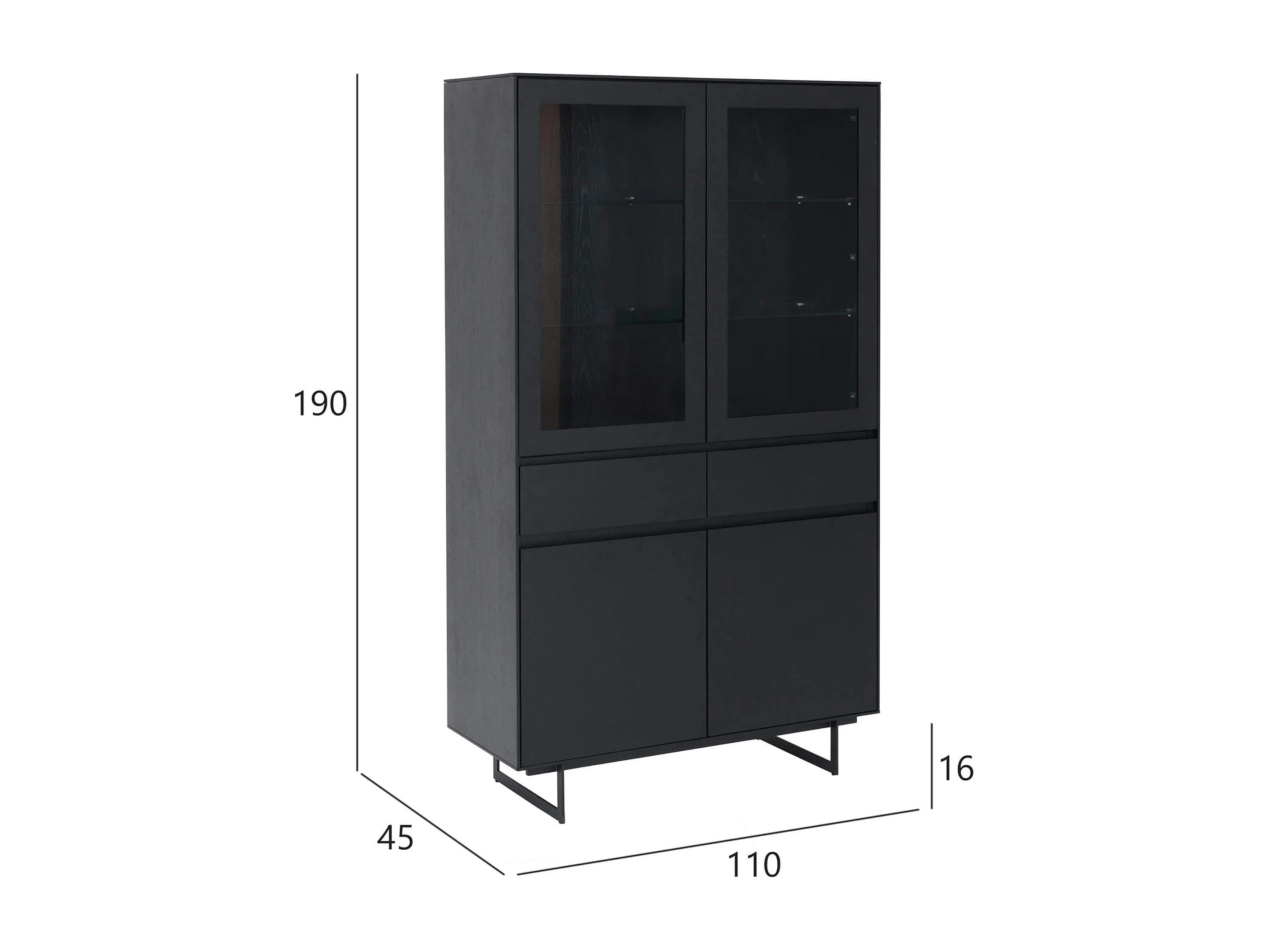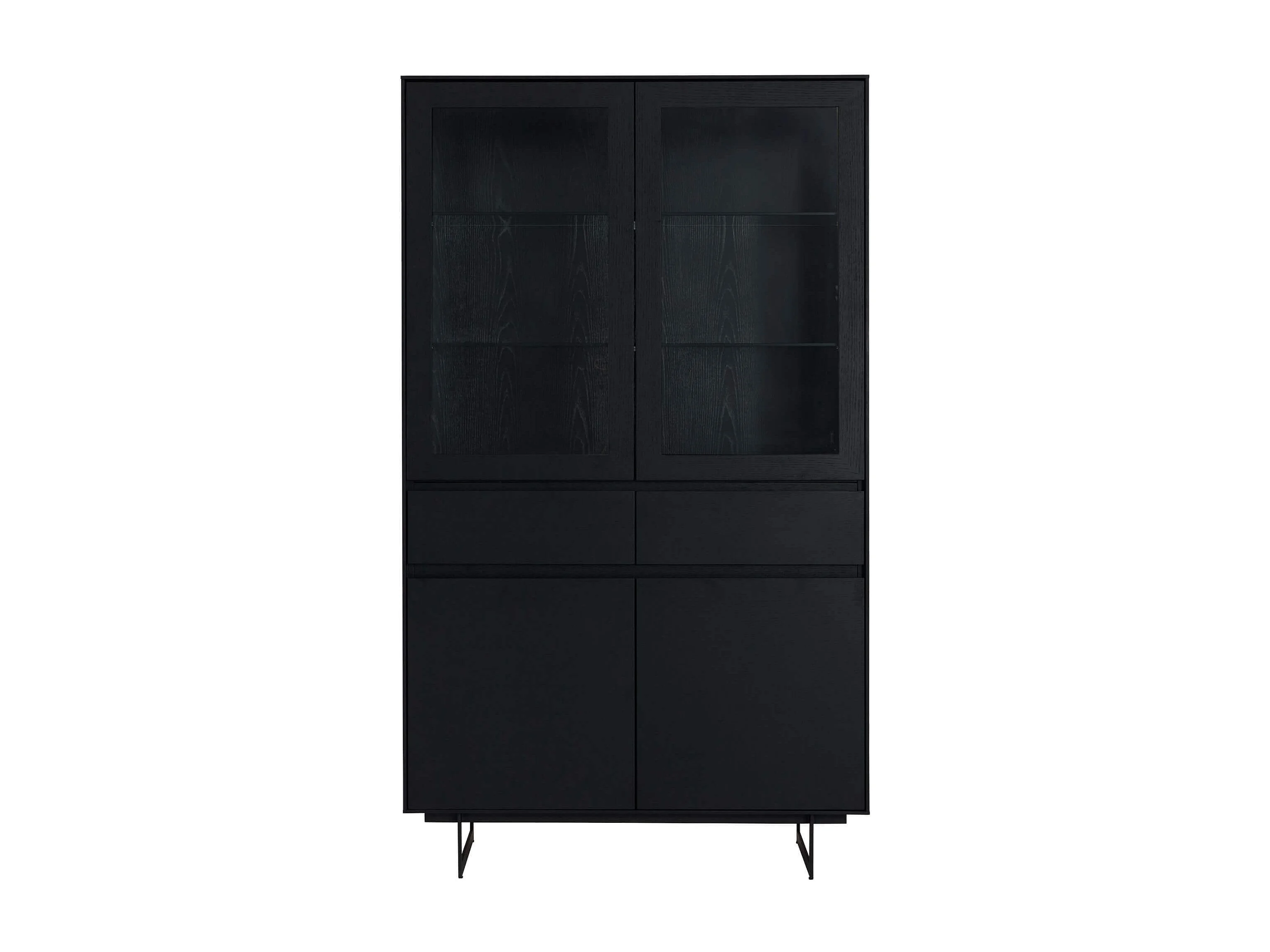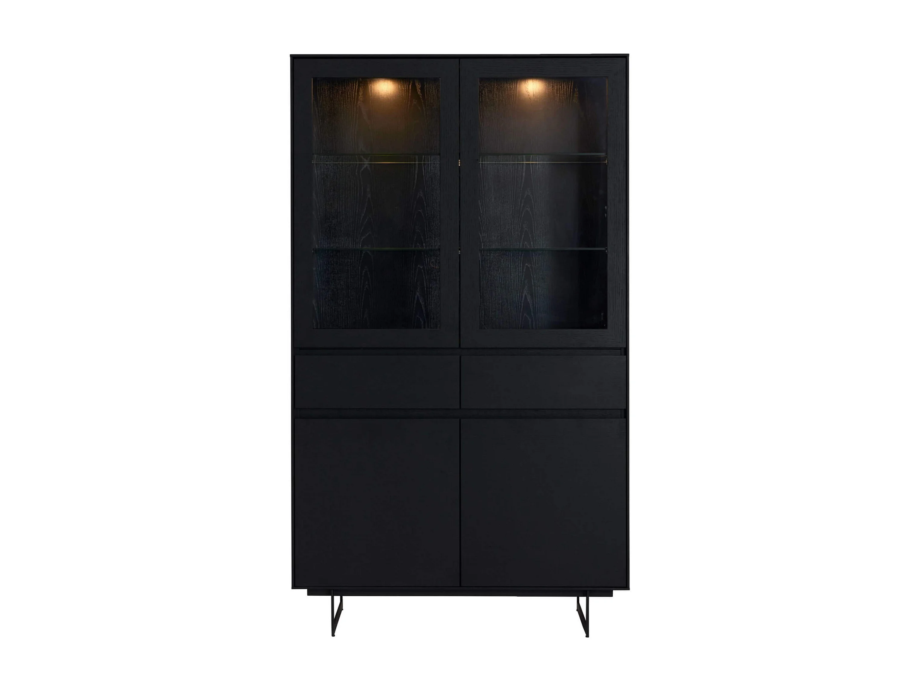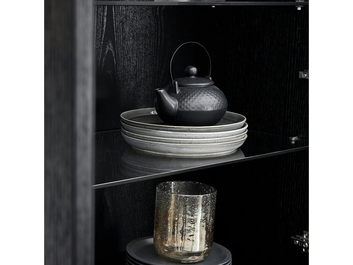 Vitrine mit LED Beleuchtung mit 2 Glastüren Tokyo - Eichenfurnier & MDF - Schwarz