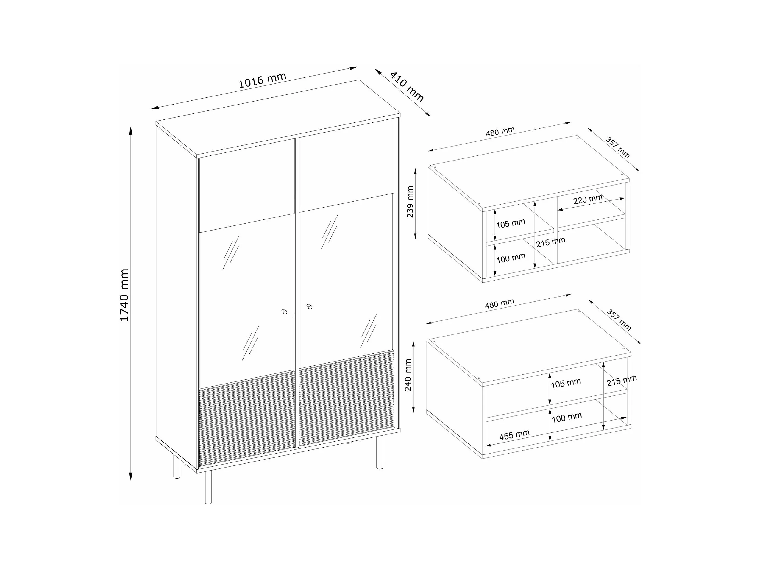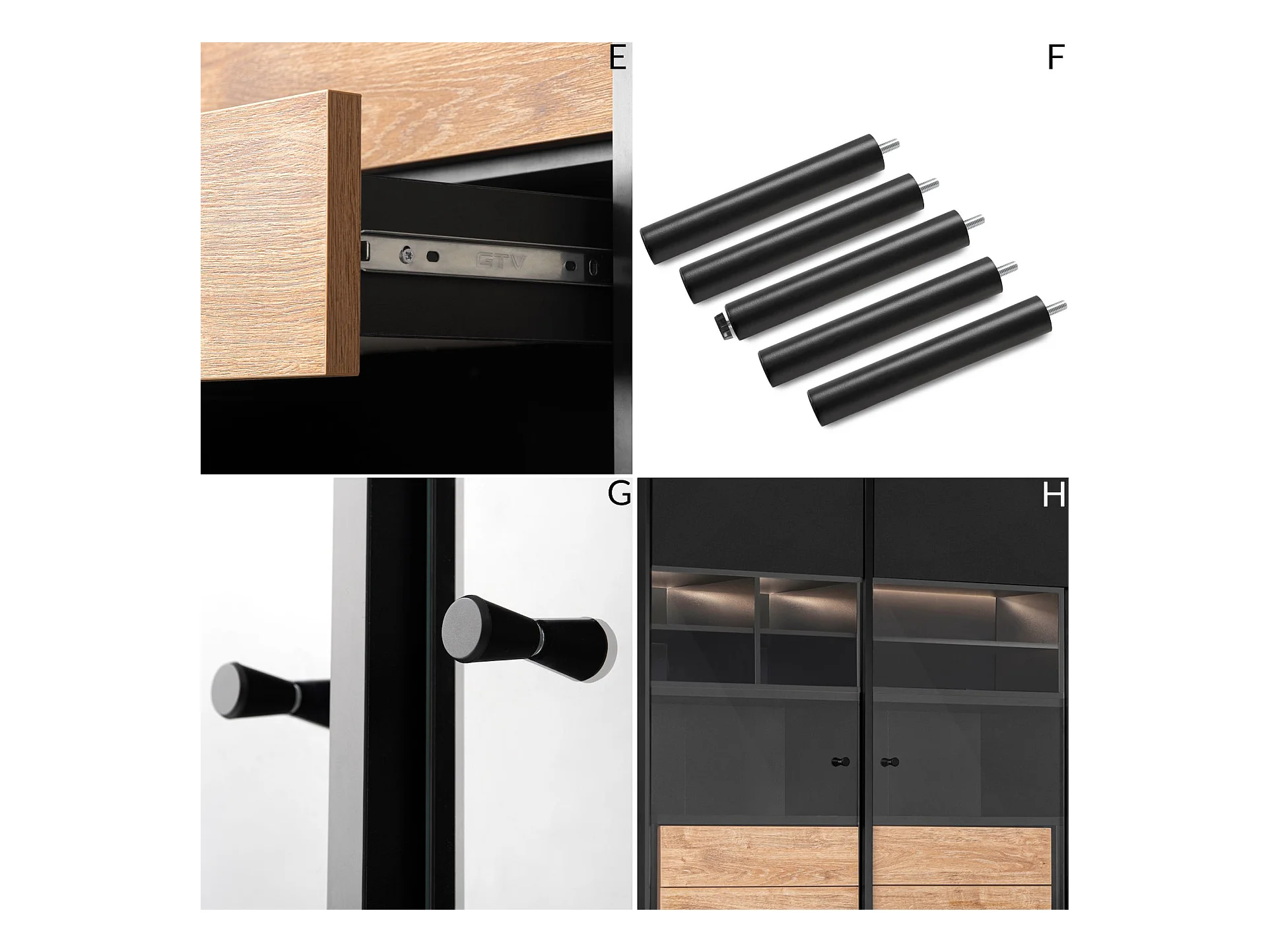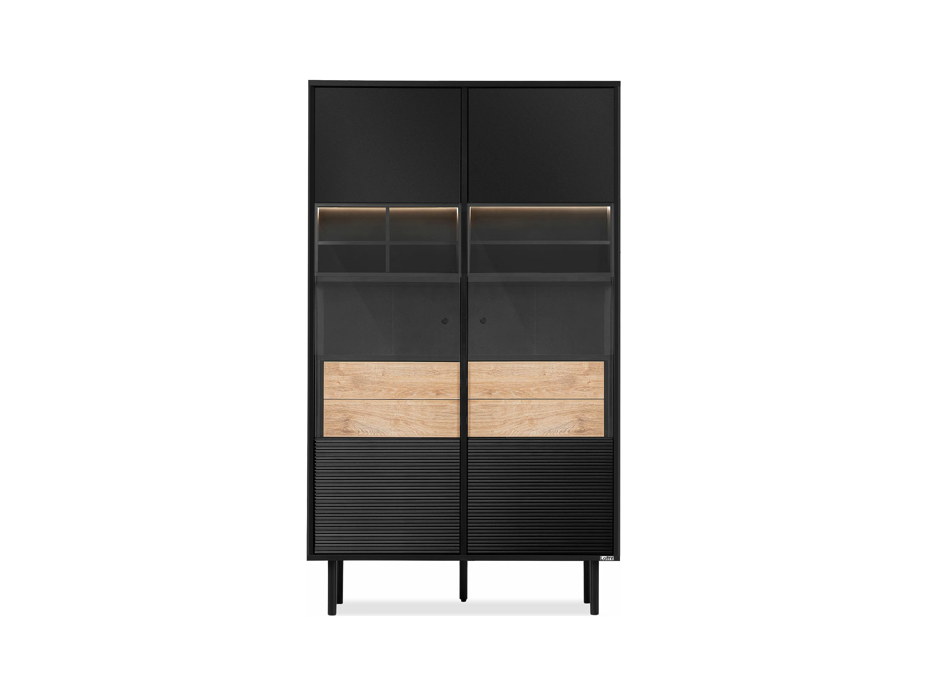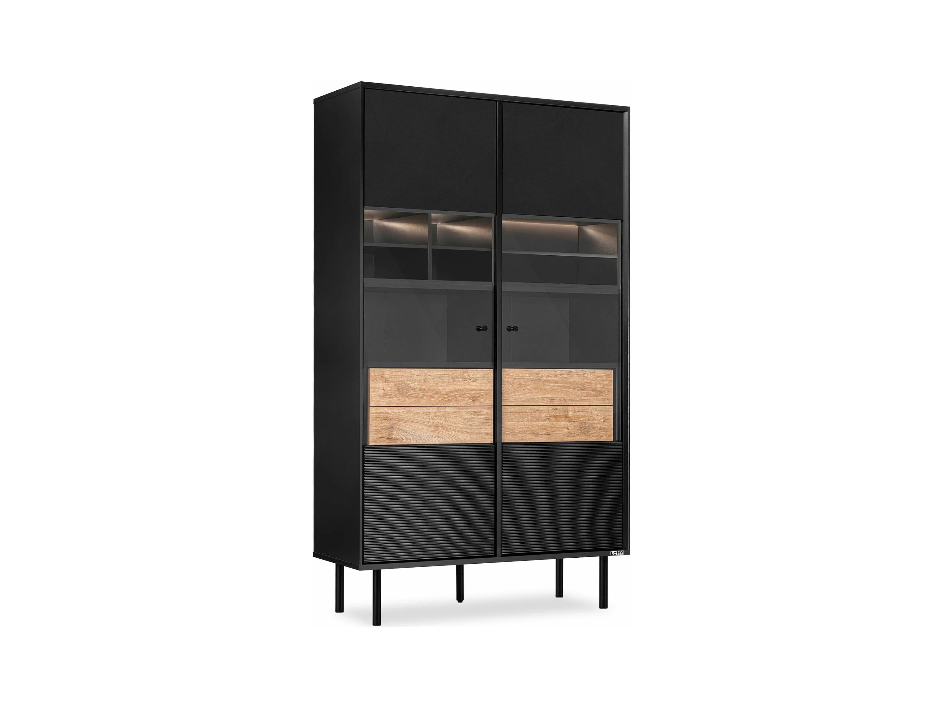 Vitrinenschränk TV/Kreuzeinlage - schwarz / Eiche natur - LOFTY