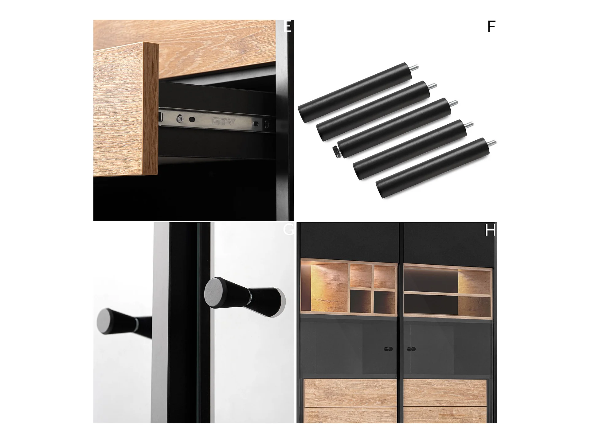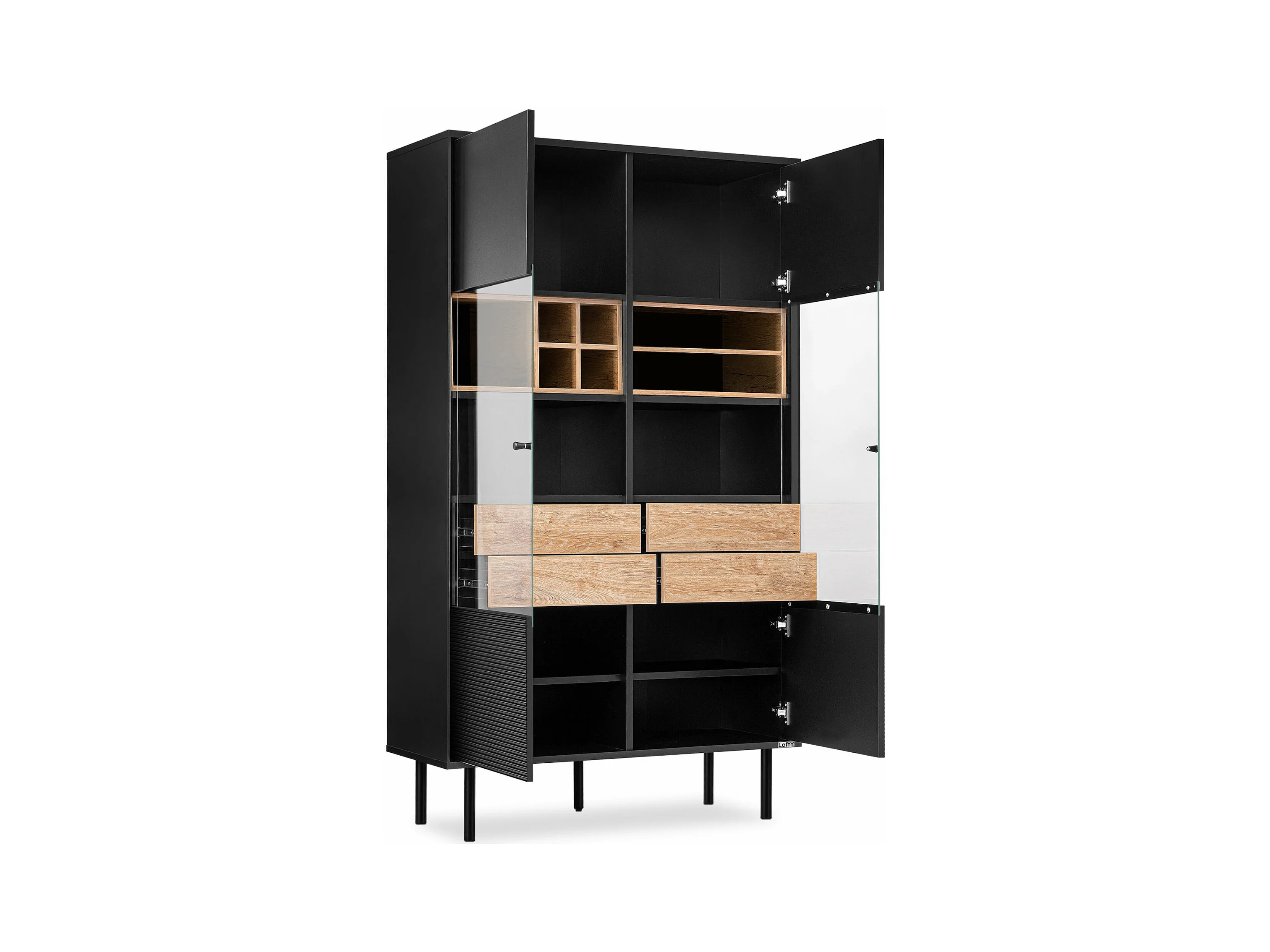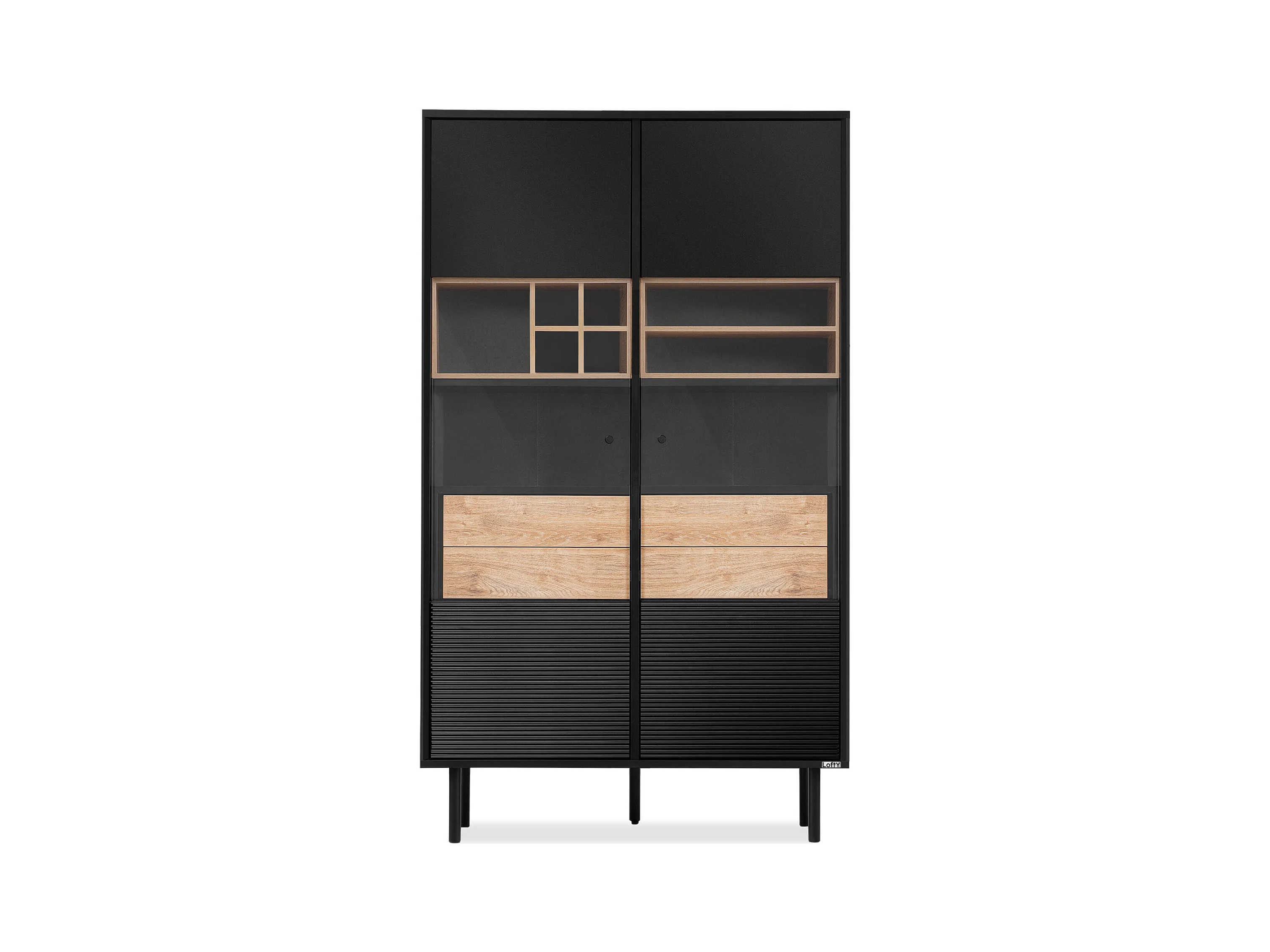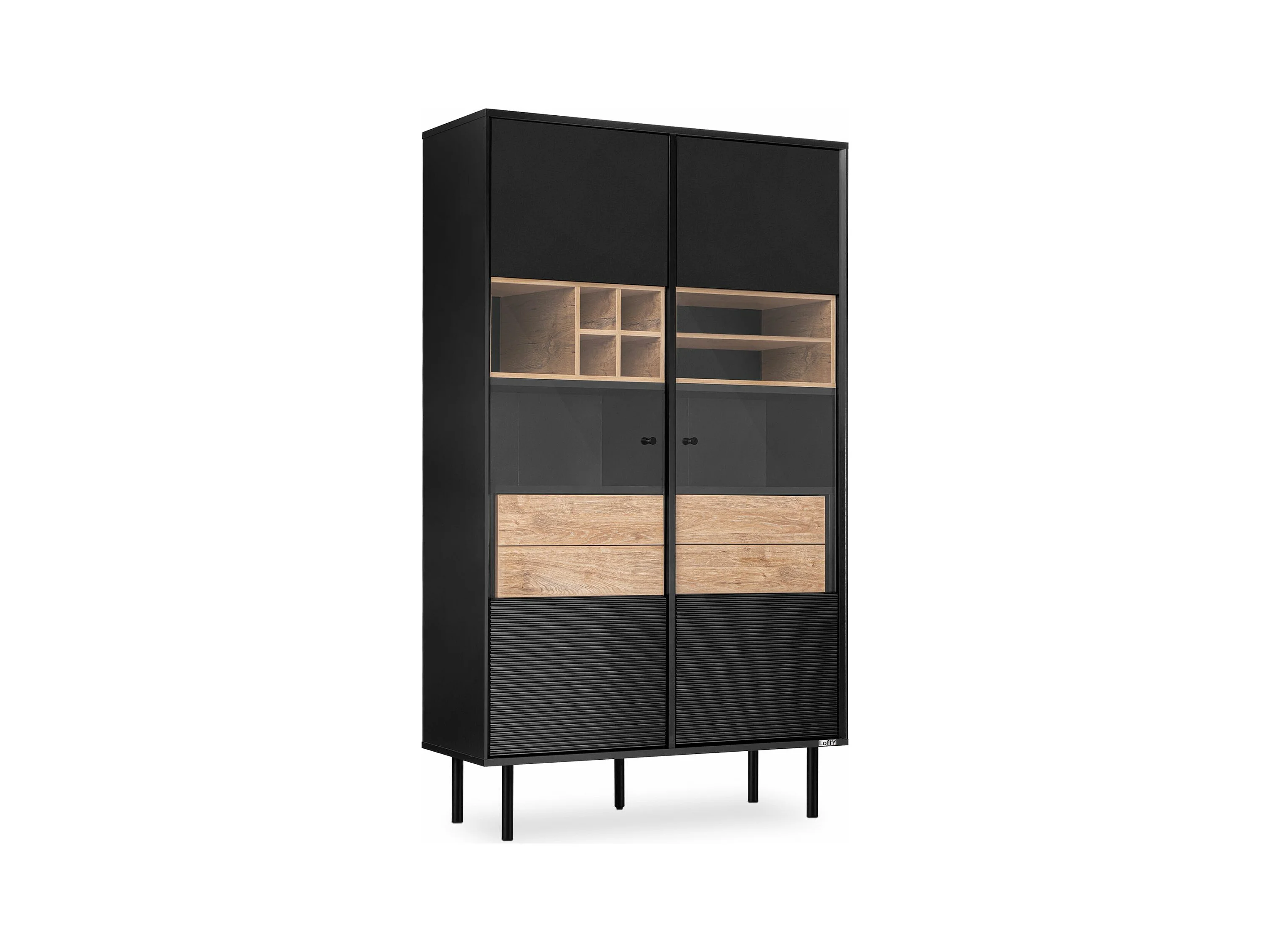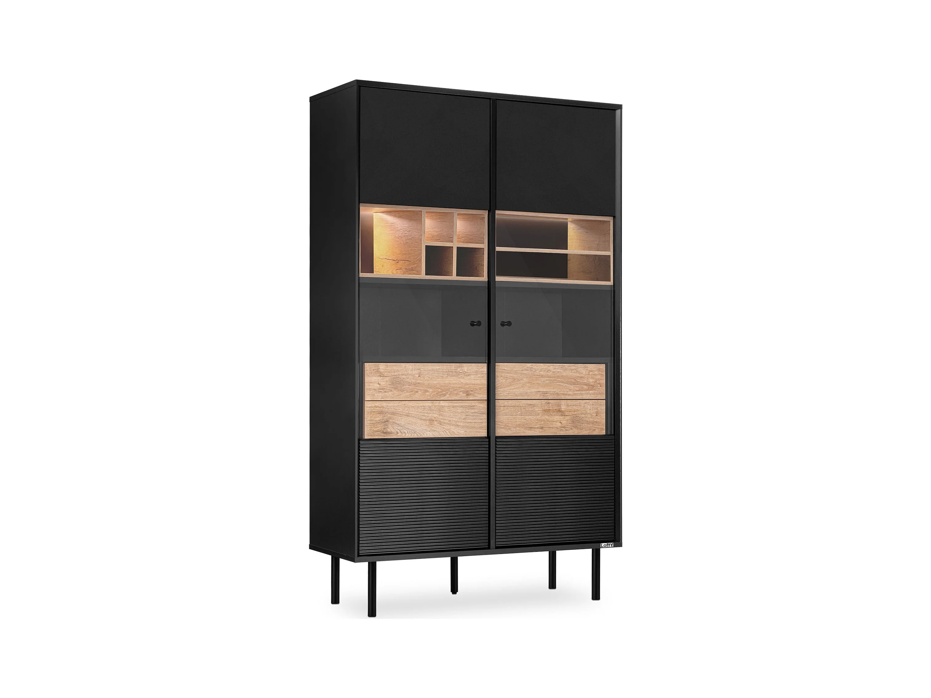 Vitrinenschränk TV/Weineinlage - schwarz / Eiche natur - LOFTY