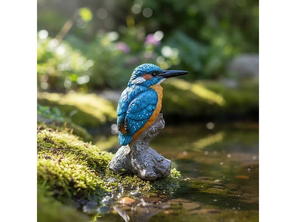 Vogel Eisvogel auf Baumstamm aus Kunstharz 9 x 9 x 15 cm