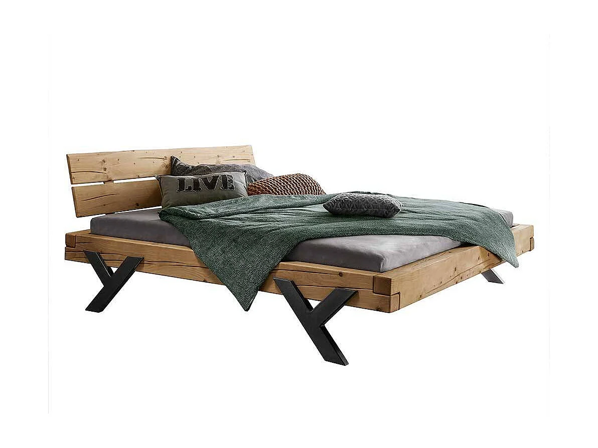 Vollholz Bettgestell mit Vierfußgestell aus Metall Y Form