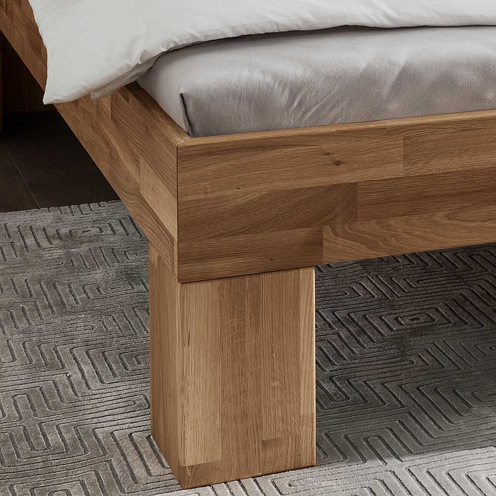 Vollholzbett aus Wildeiche massiv zwei Nachtkommoden (dreiteilig)