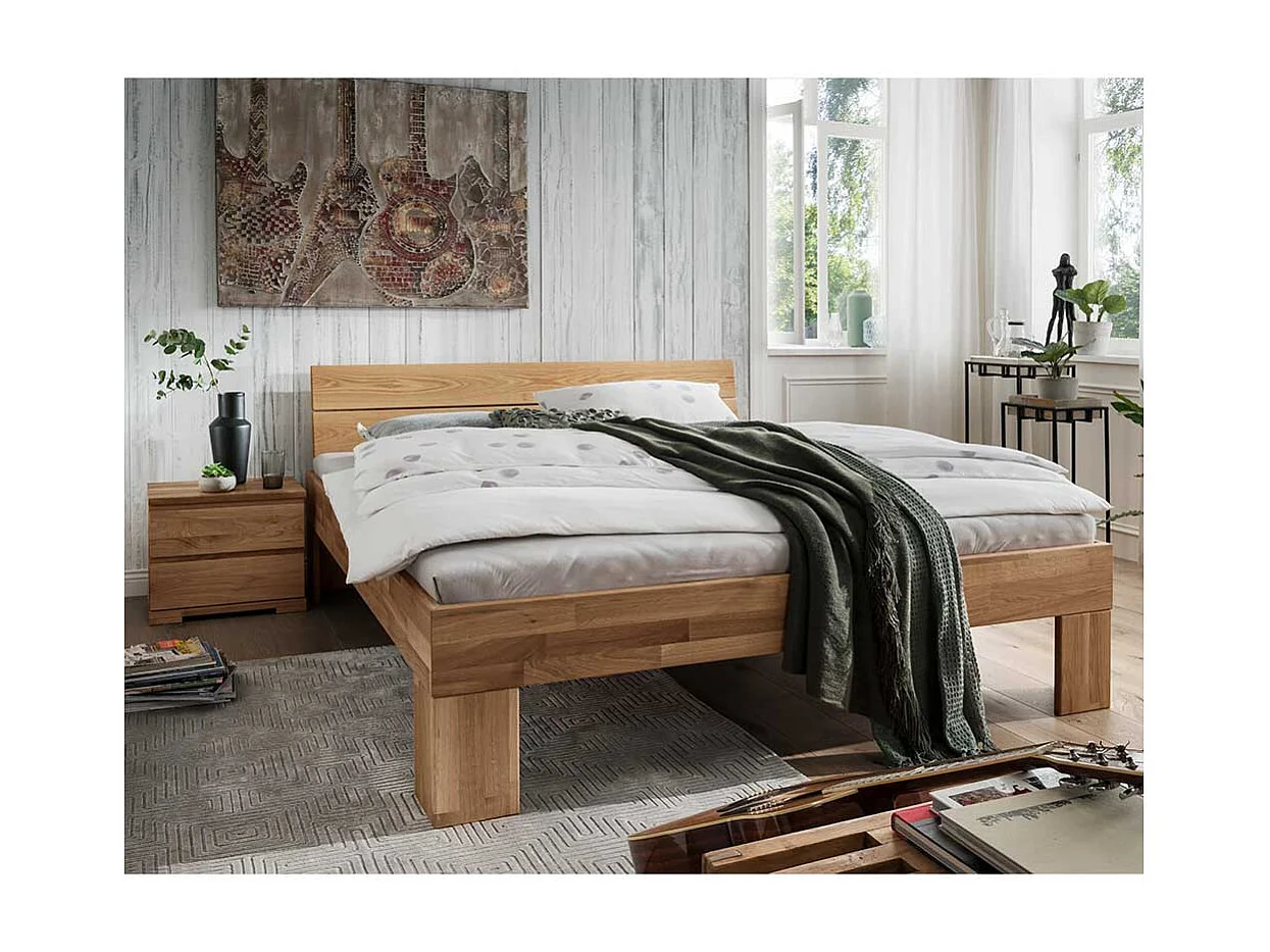 Vollholzbett aus Wildeiche massiv zwei Nachtkommoden (dreiteilig)