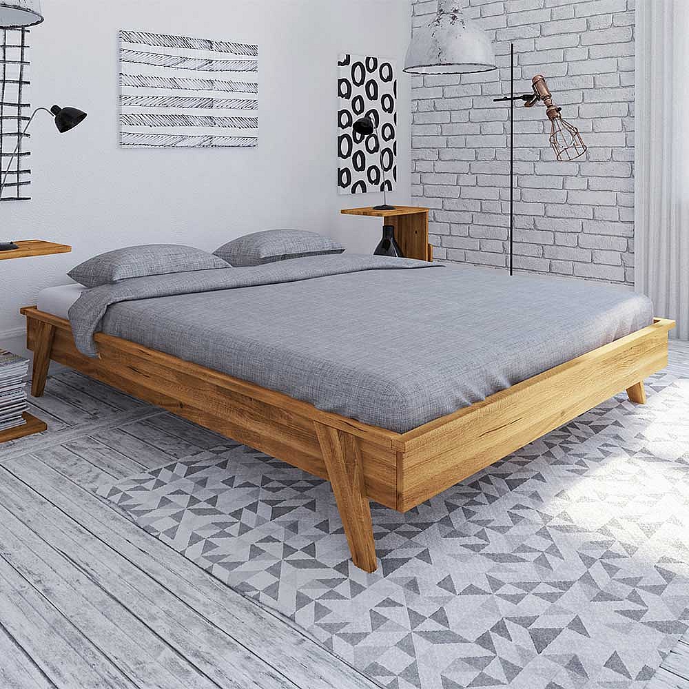 Vollholzbett aus Wildeiche Massivholz Kopfteil