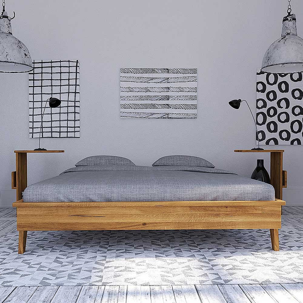 Vollholzbett aus Wildeiche Massivholz Kopfteil