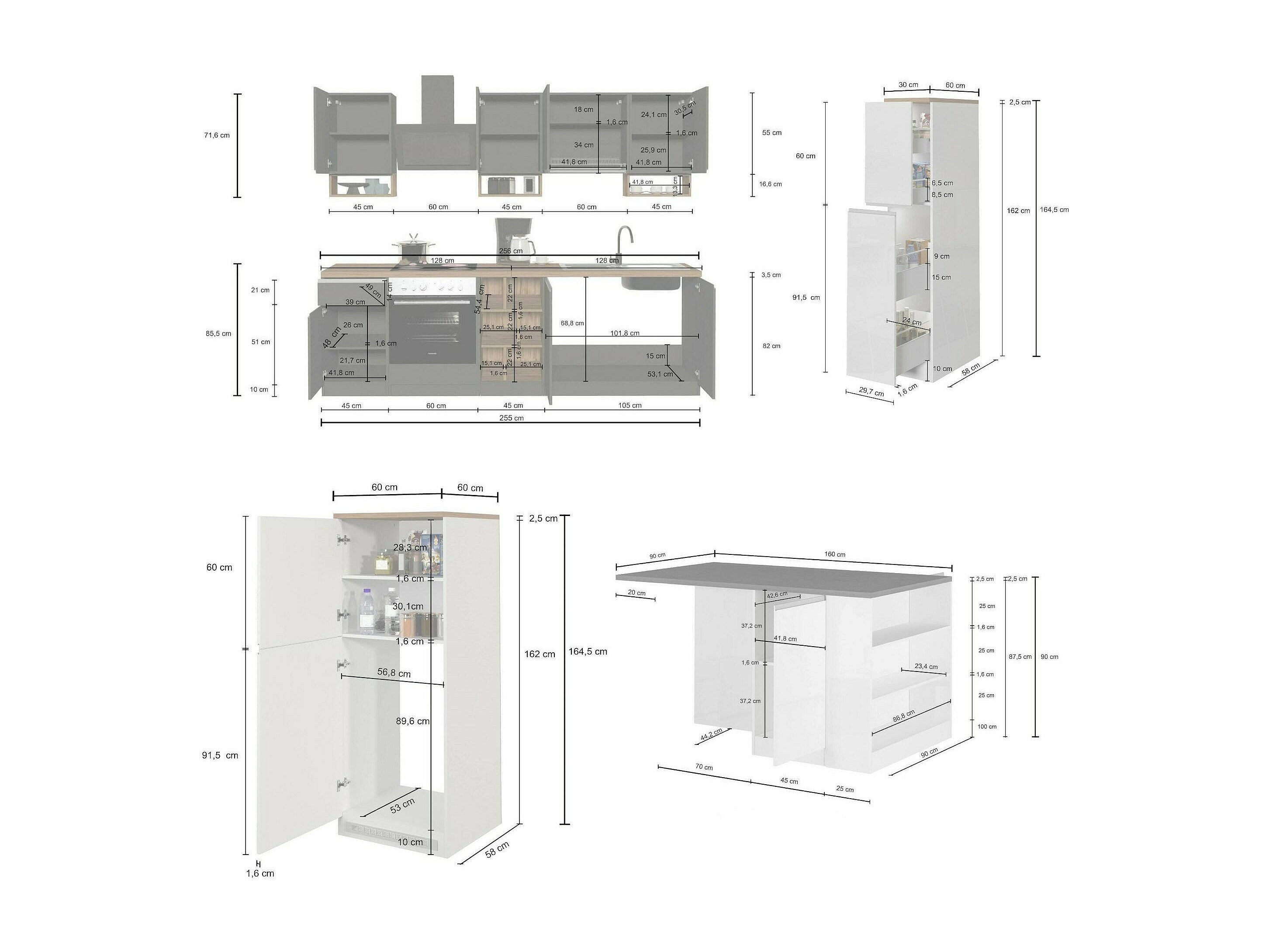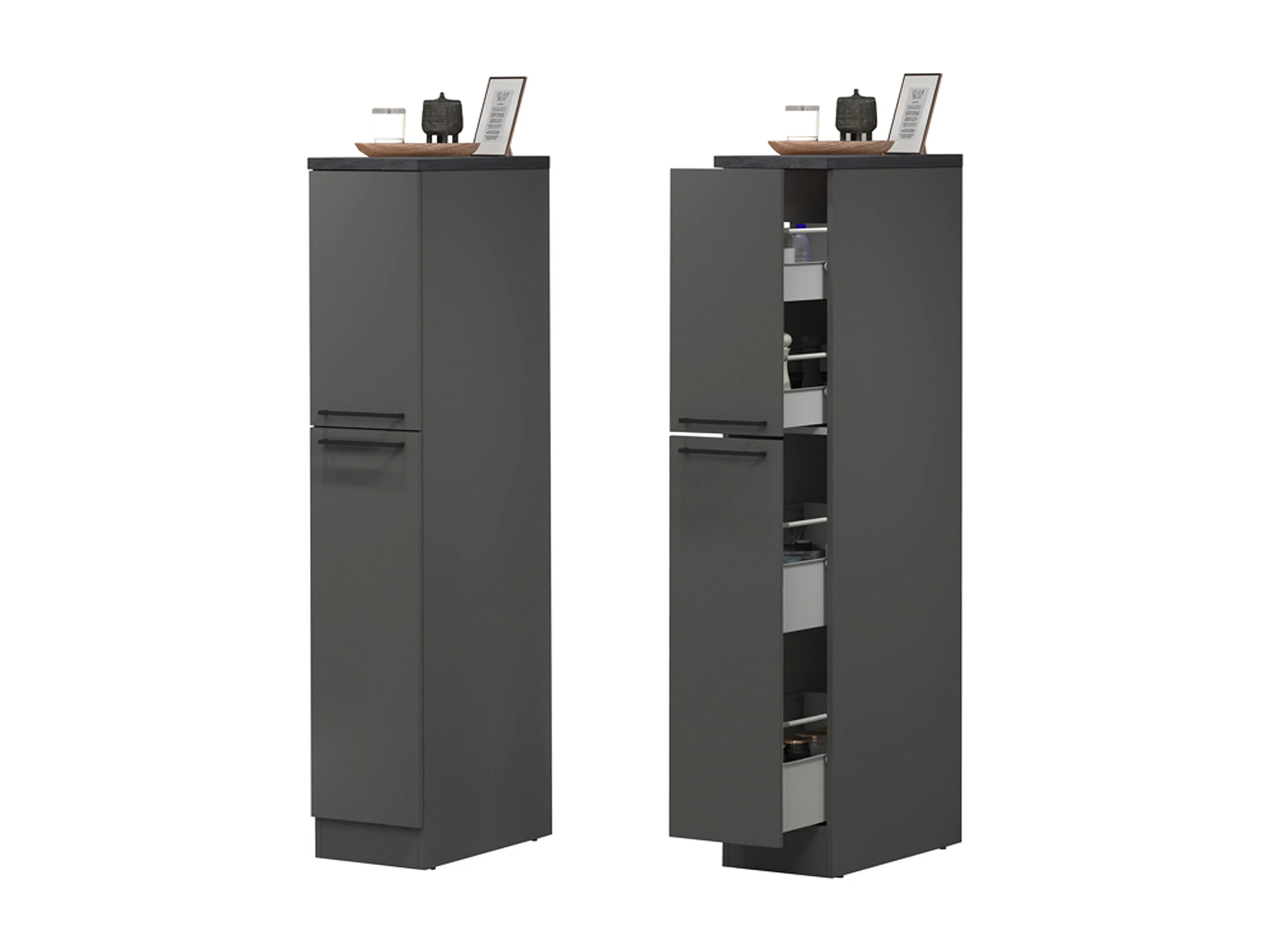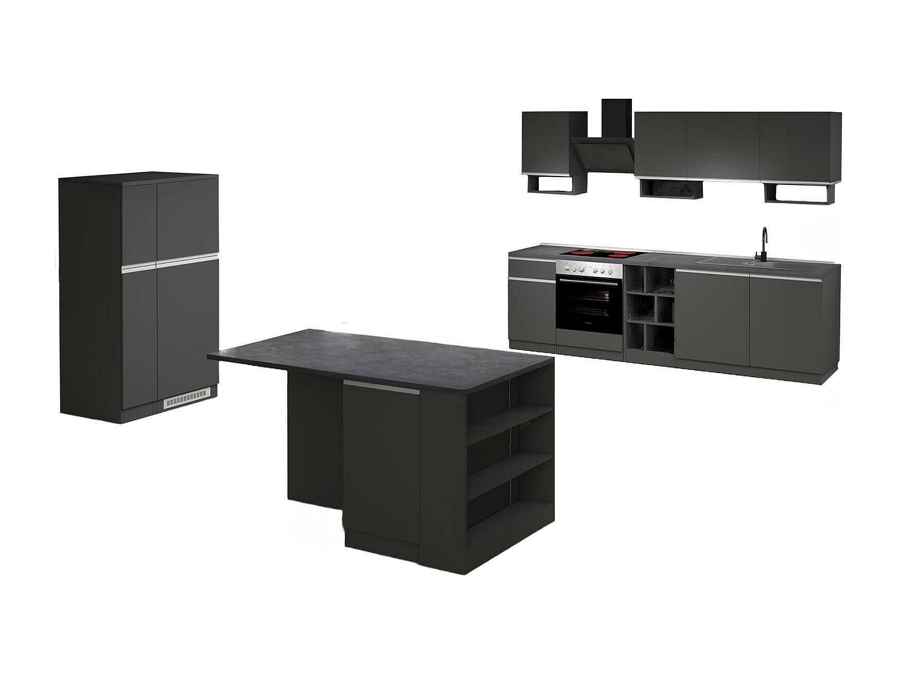 Vollständige Küche Dancelott, Set mit Speisekammer, Küchenzeile Schrank, Blockbausatz mit Insel und Kühlschrankträger, 100 % Made in Italy, Anthrazit und Schiefer