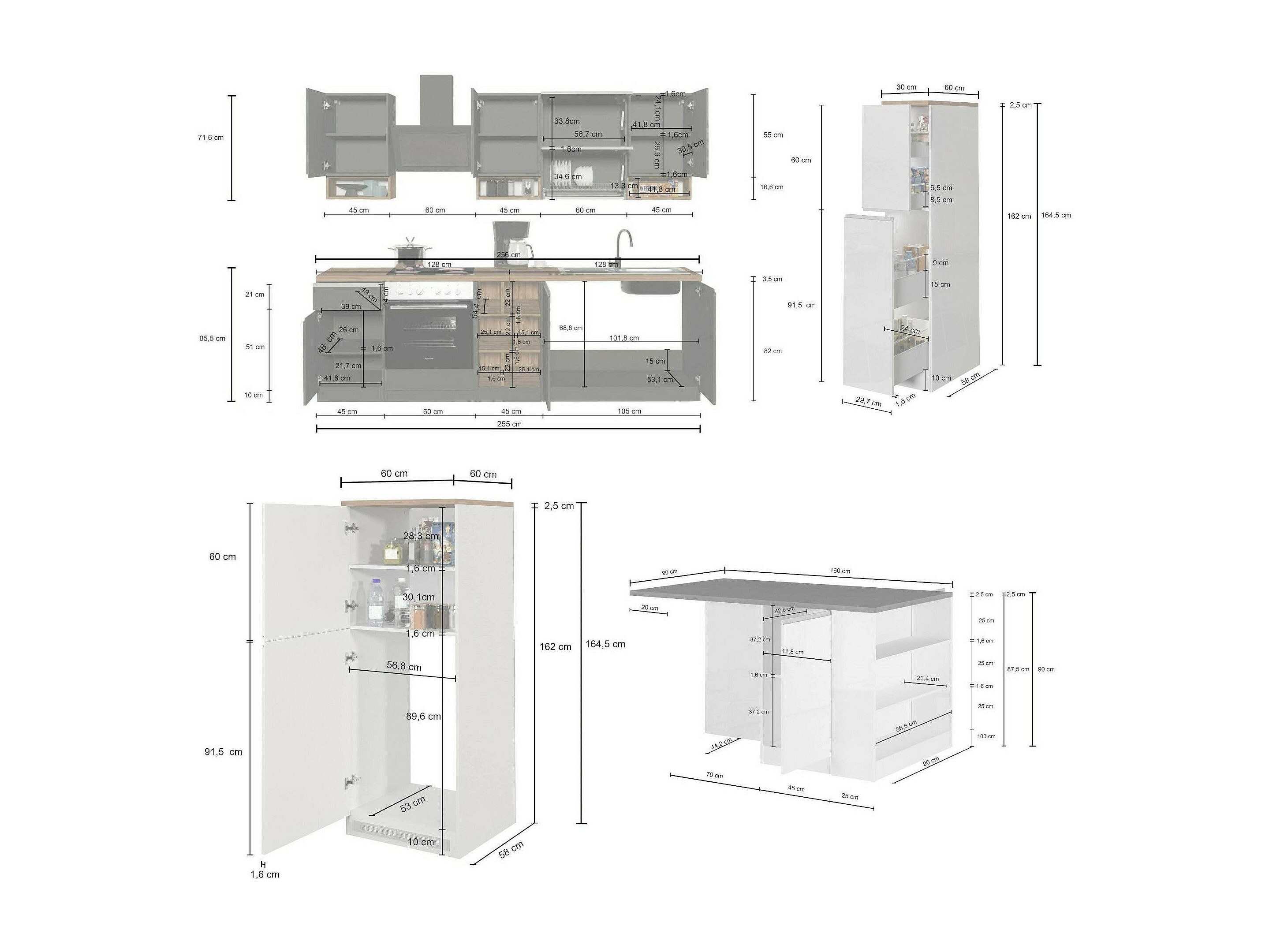 Vollständige Küche Danderso, Set mit Speisekammer, Küchenzeile Schrank, Blockbausatz mit Insel und Kühlschrankträger, 100 % Made in Italy, Anthrazit und Eiche
