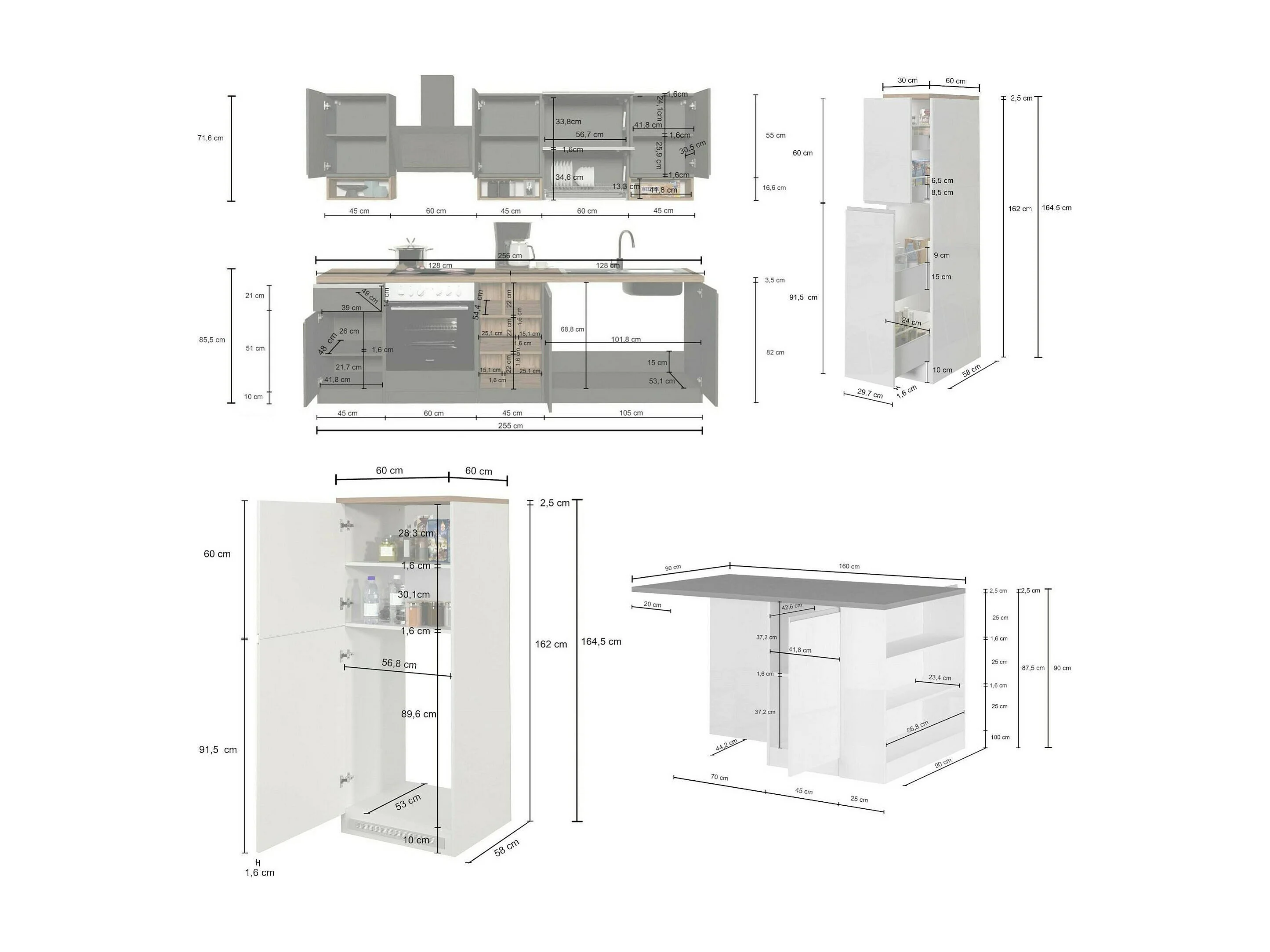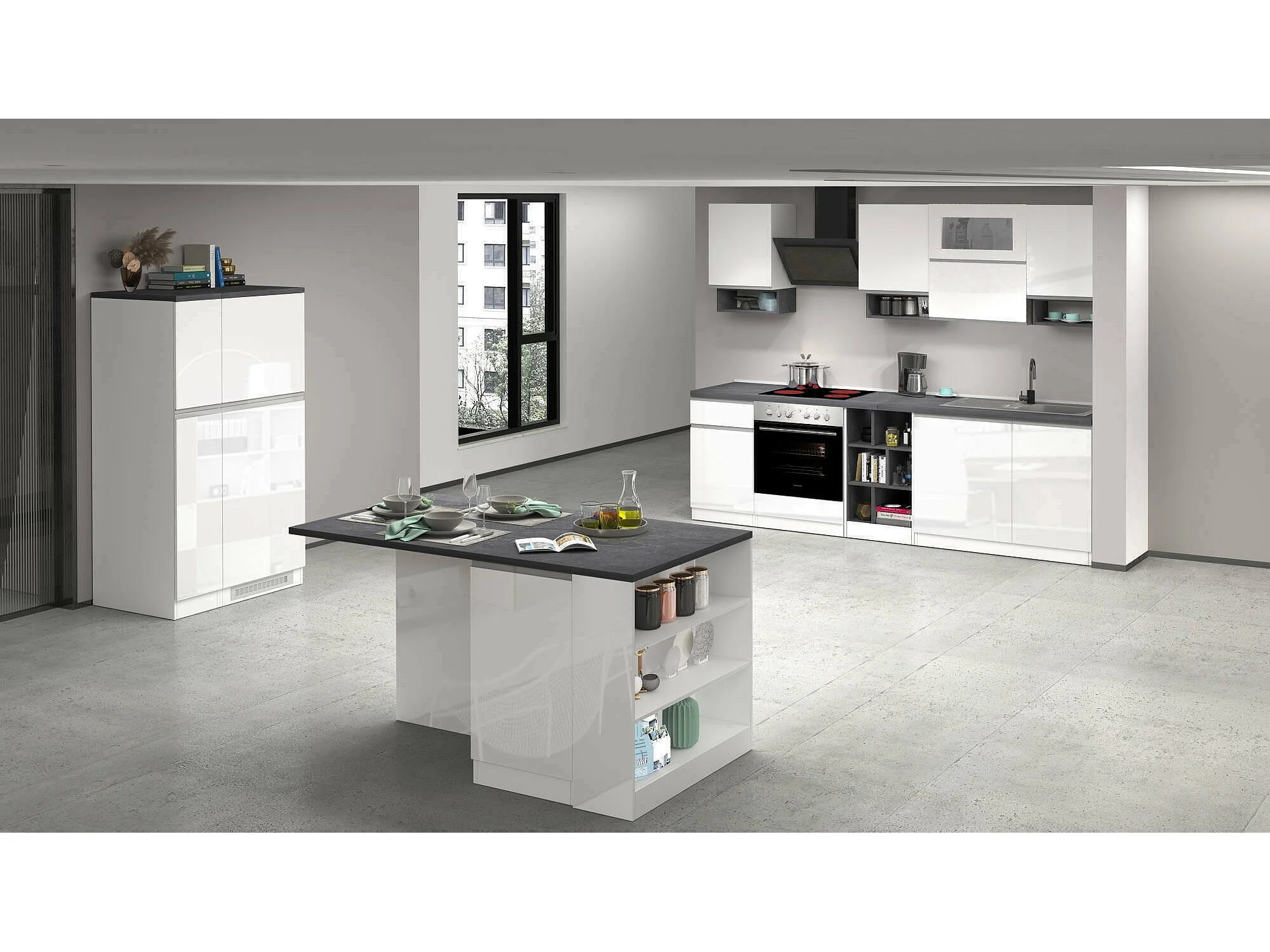 Cocina completa Balme, Set con despensa, Mueble cocina, Kit de bloques con isla y soporte para frigorífico, 100% Made in Italy, Blanco brillo y pizarra