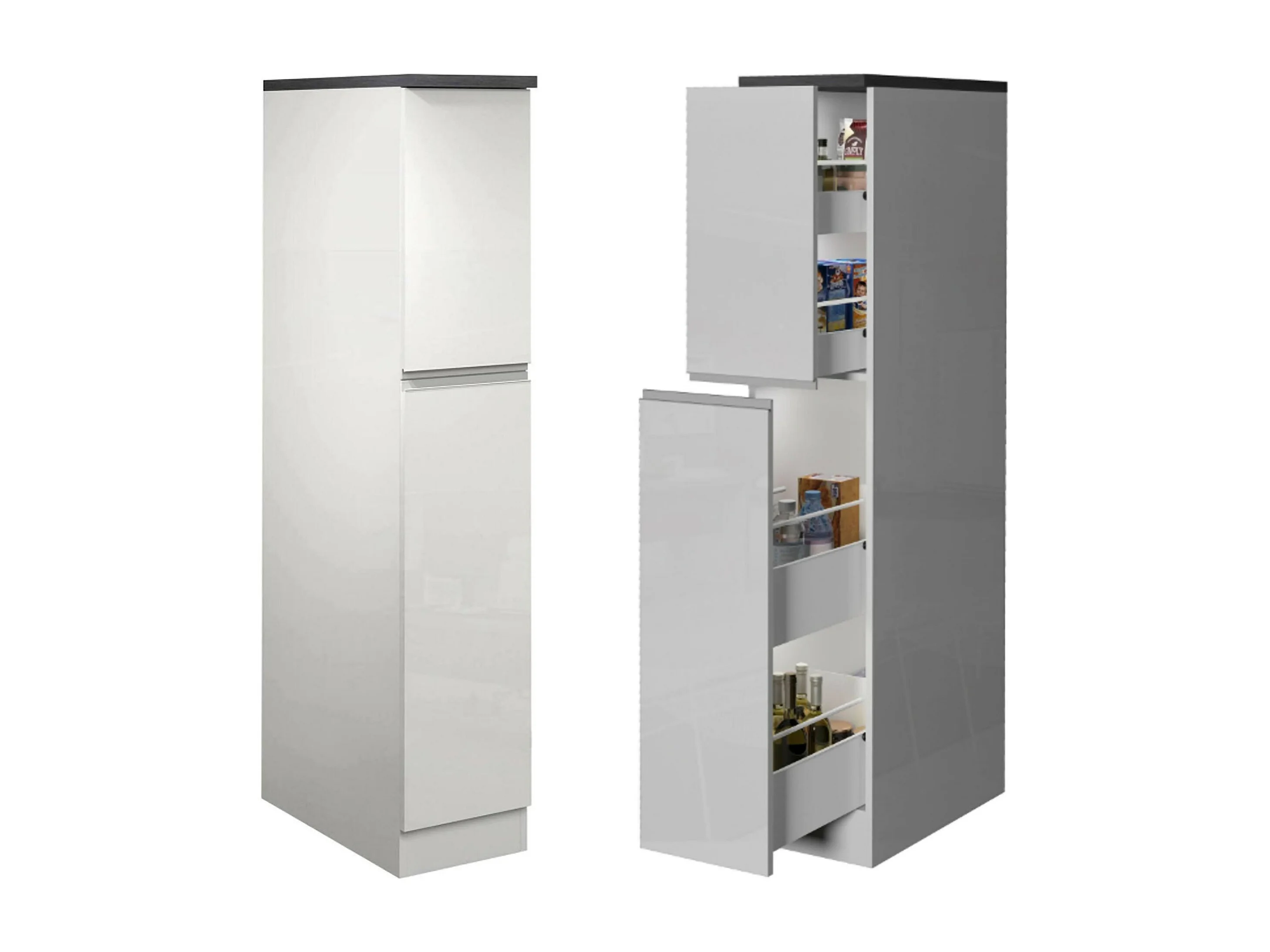 Cocina completa Balme, Set con despensa, Mueble cocina, Kit de bloques con isla y soporte para frigorífico, 100% Made in Italy, Blanco brillo y pizarra