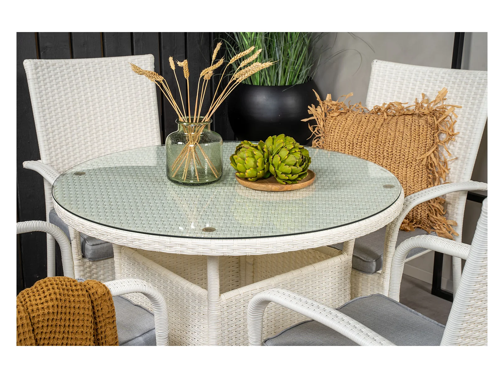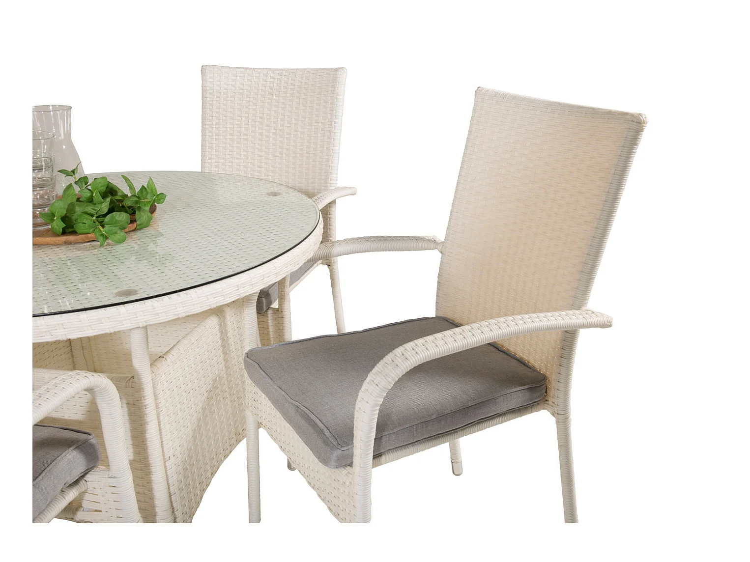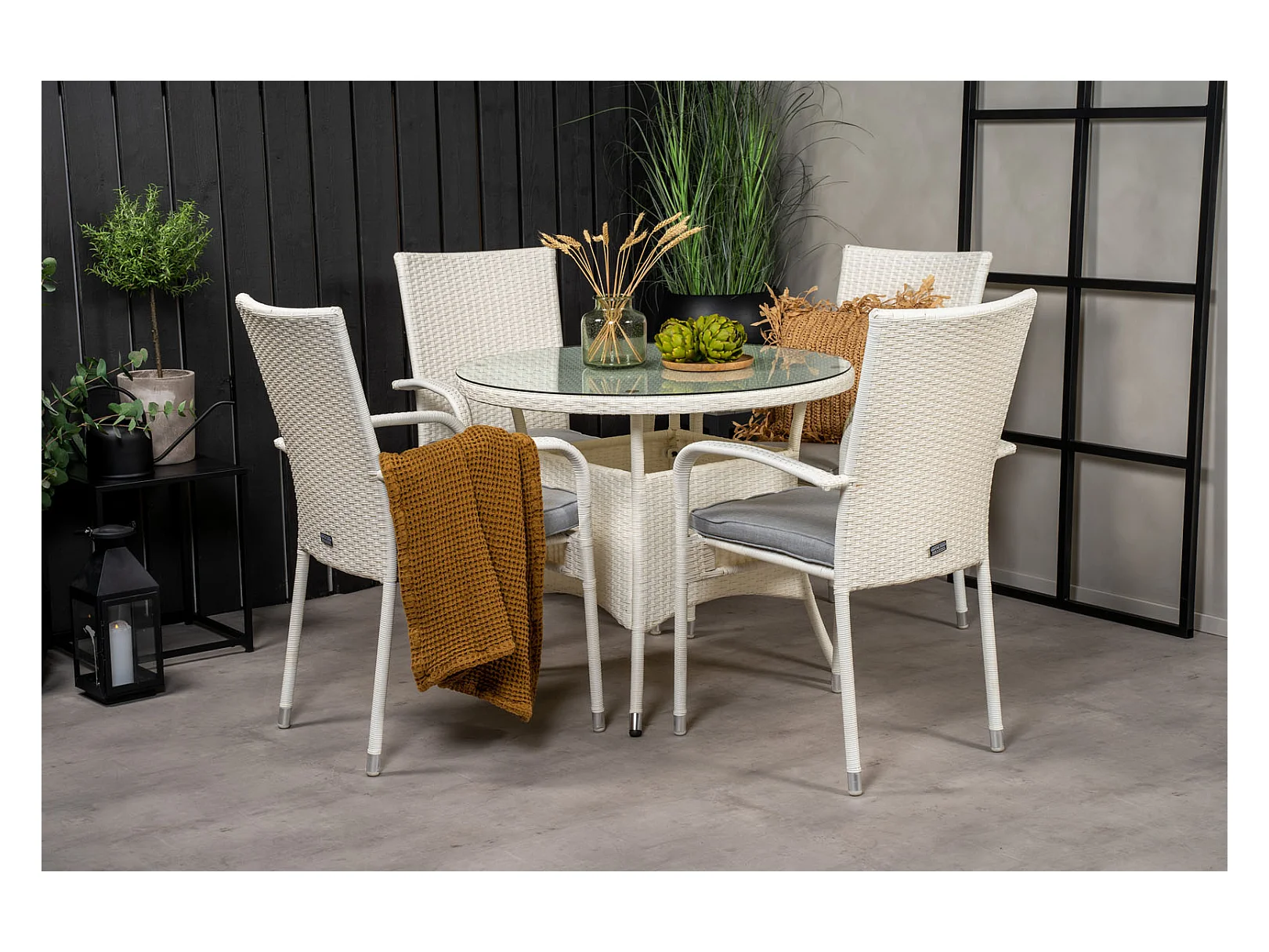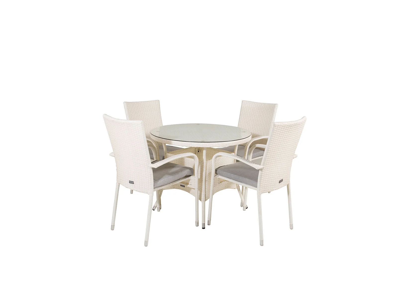 Volta Gartenset Tisch Ø90cm und 4 Stühle Anna weiß.