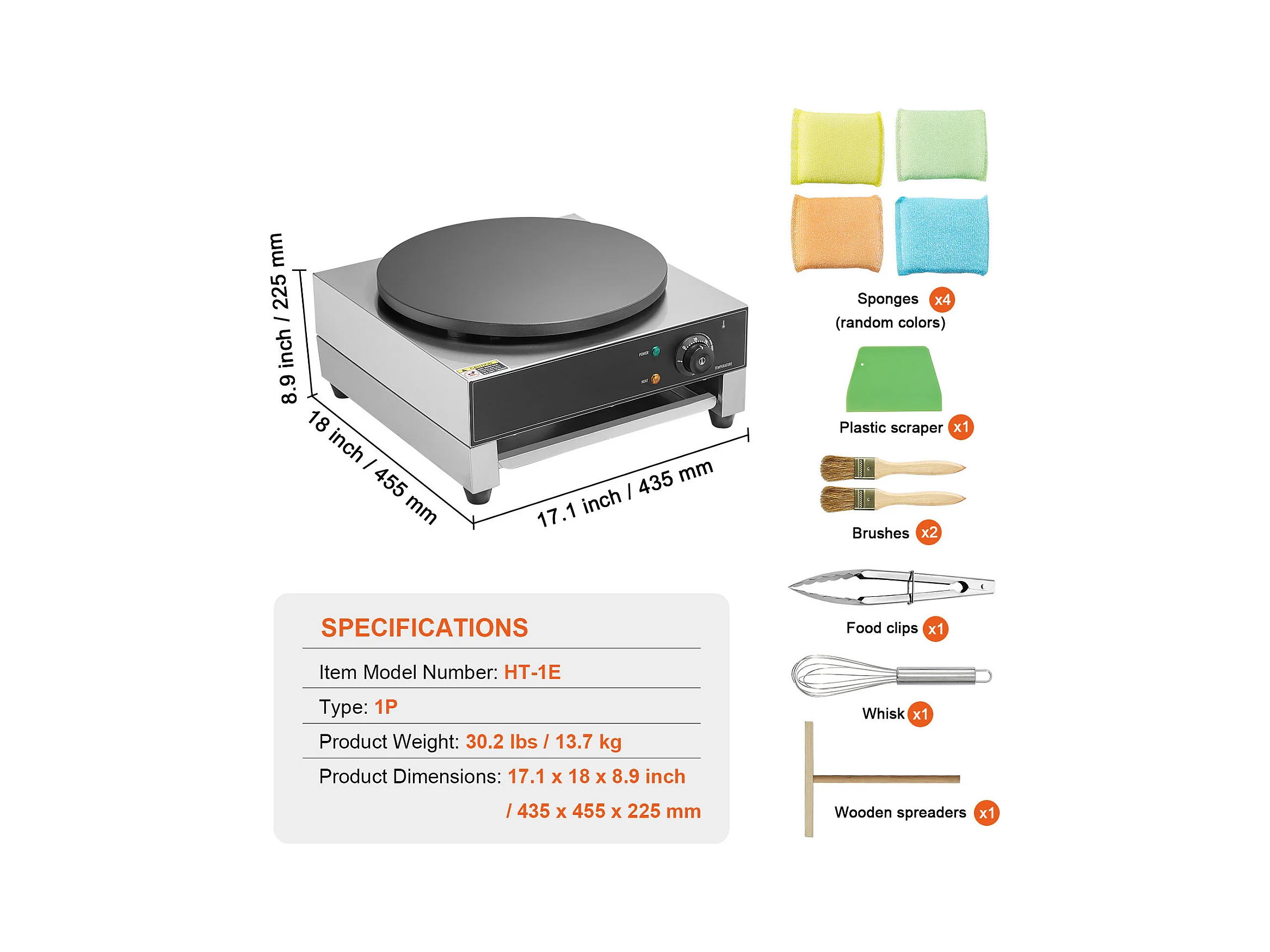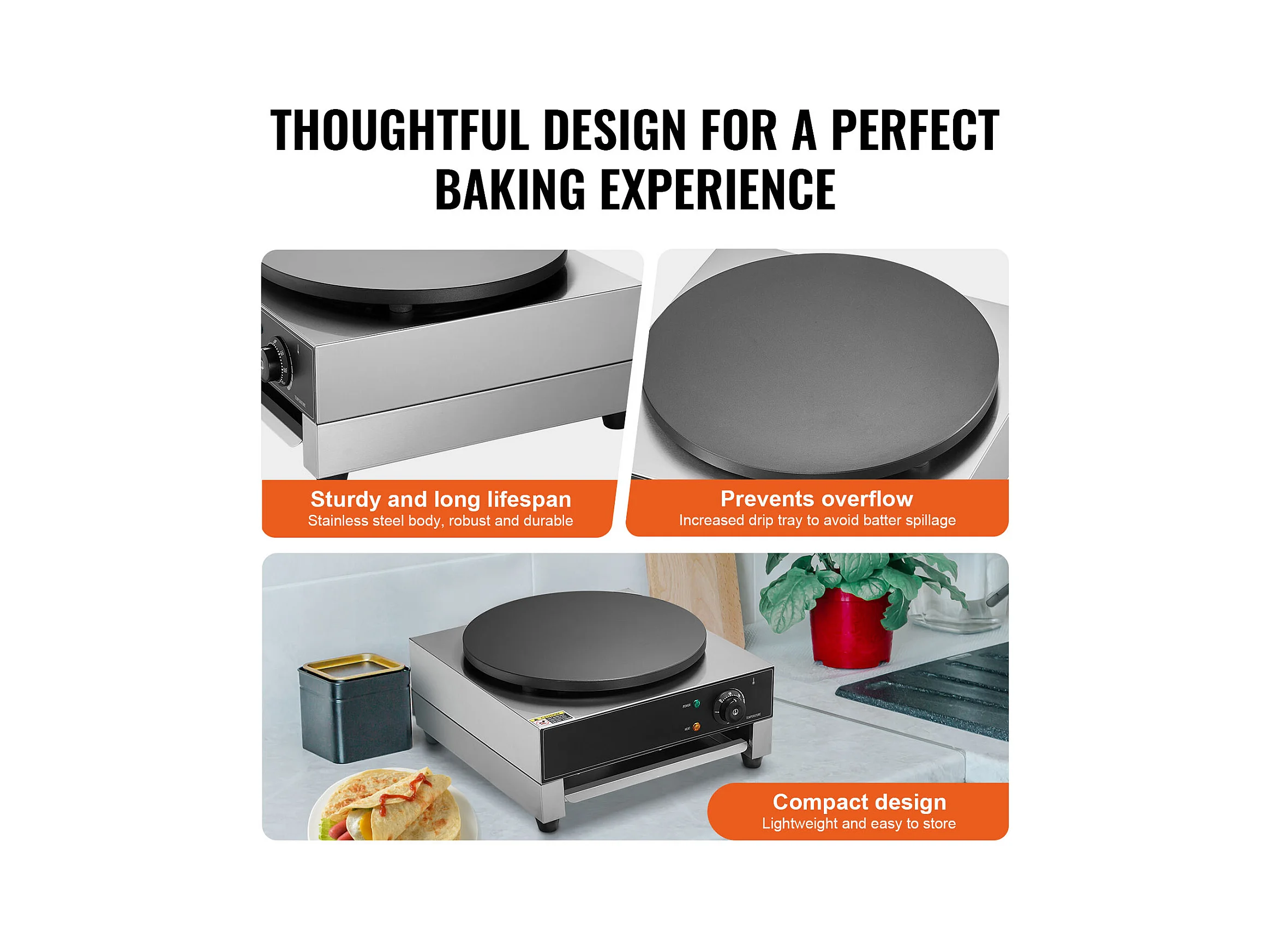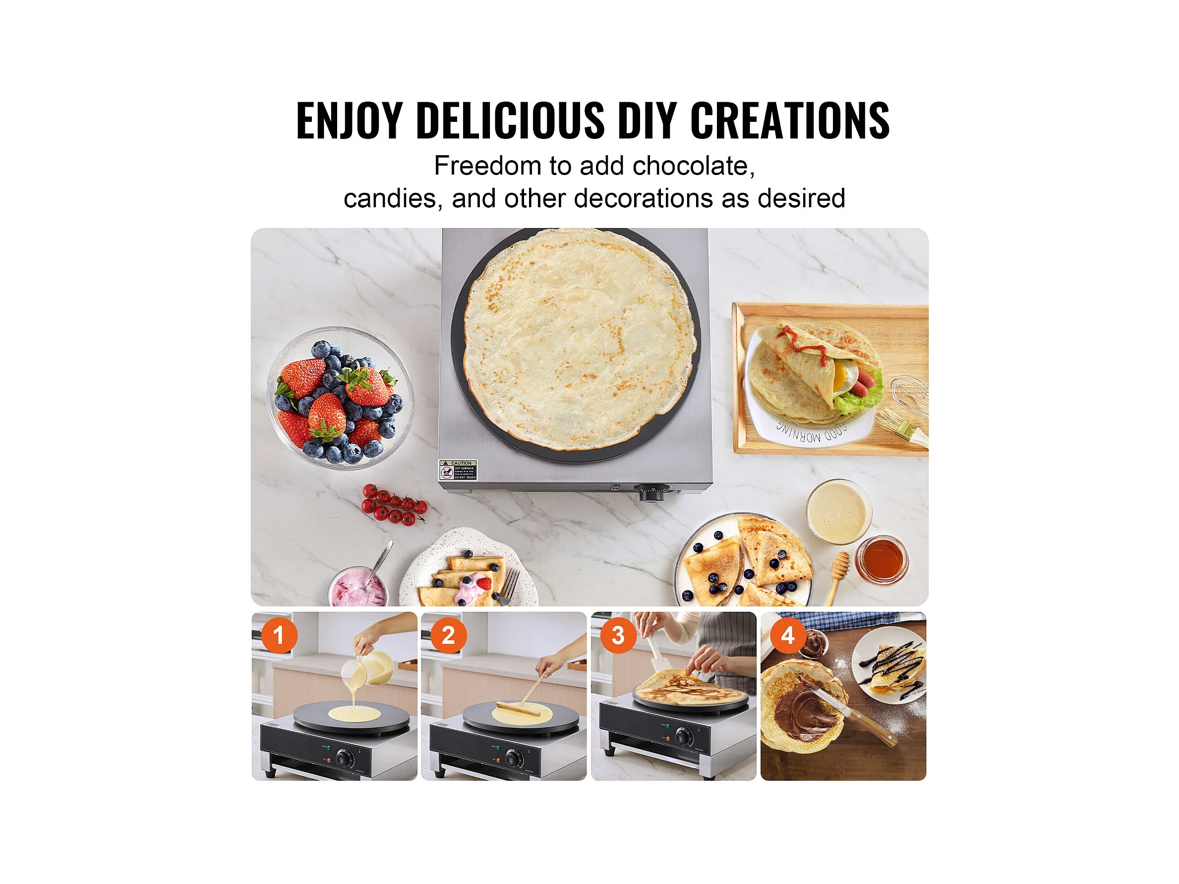 Waffelmaschine SucceBuy Elektrischer Crêpe-Maker, 40,6 cm, 1700 W, Antihaftbeschichtet, Kommerzielles Waffeleisen