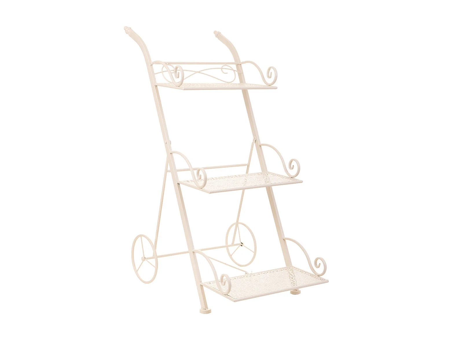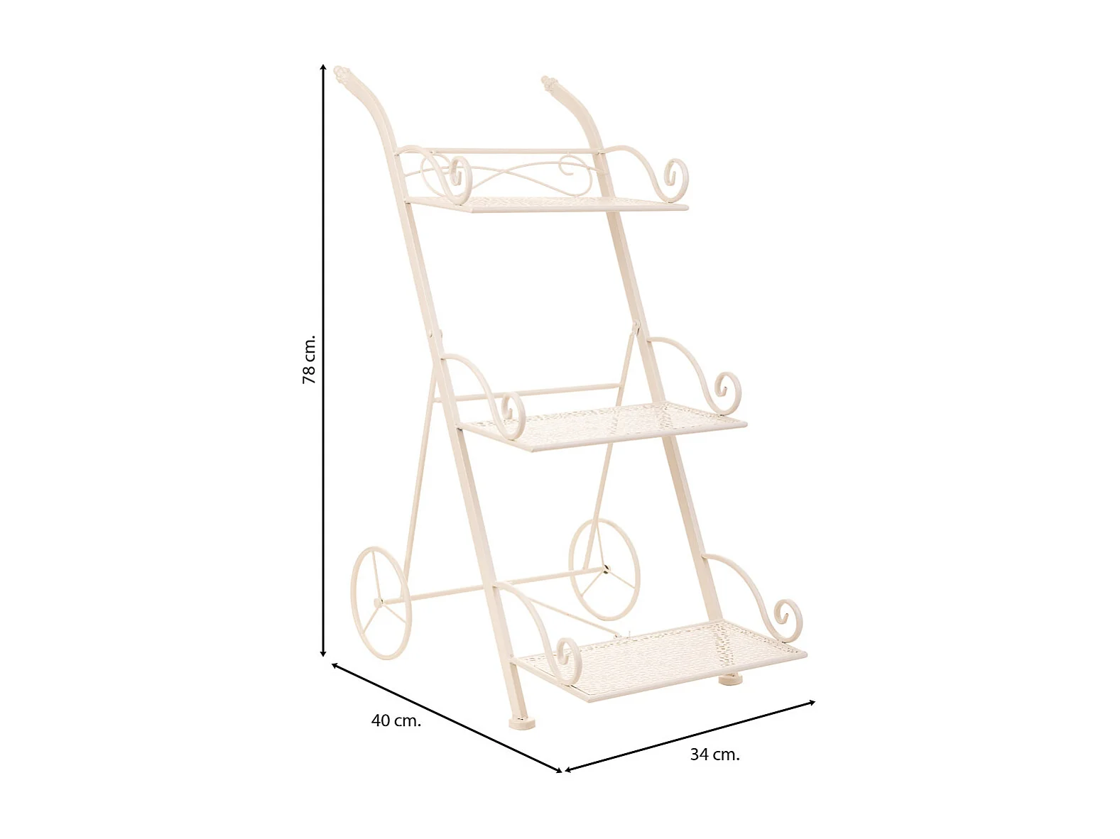 Wagen mit 3 Regalen für weiße Schmiedeeisentöpfe 40x34x76