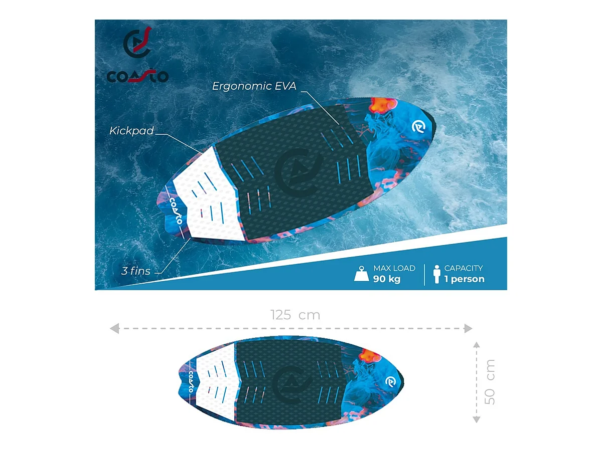 Wakesurf Coasto Opal 125x50 cm - Rocker : 6 cm - 3 Flossen MAX 90kg Leicht, komfortabel und praktisch -PB-CWKSOPAL