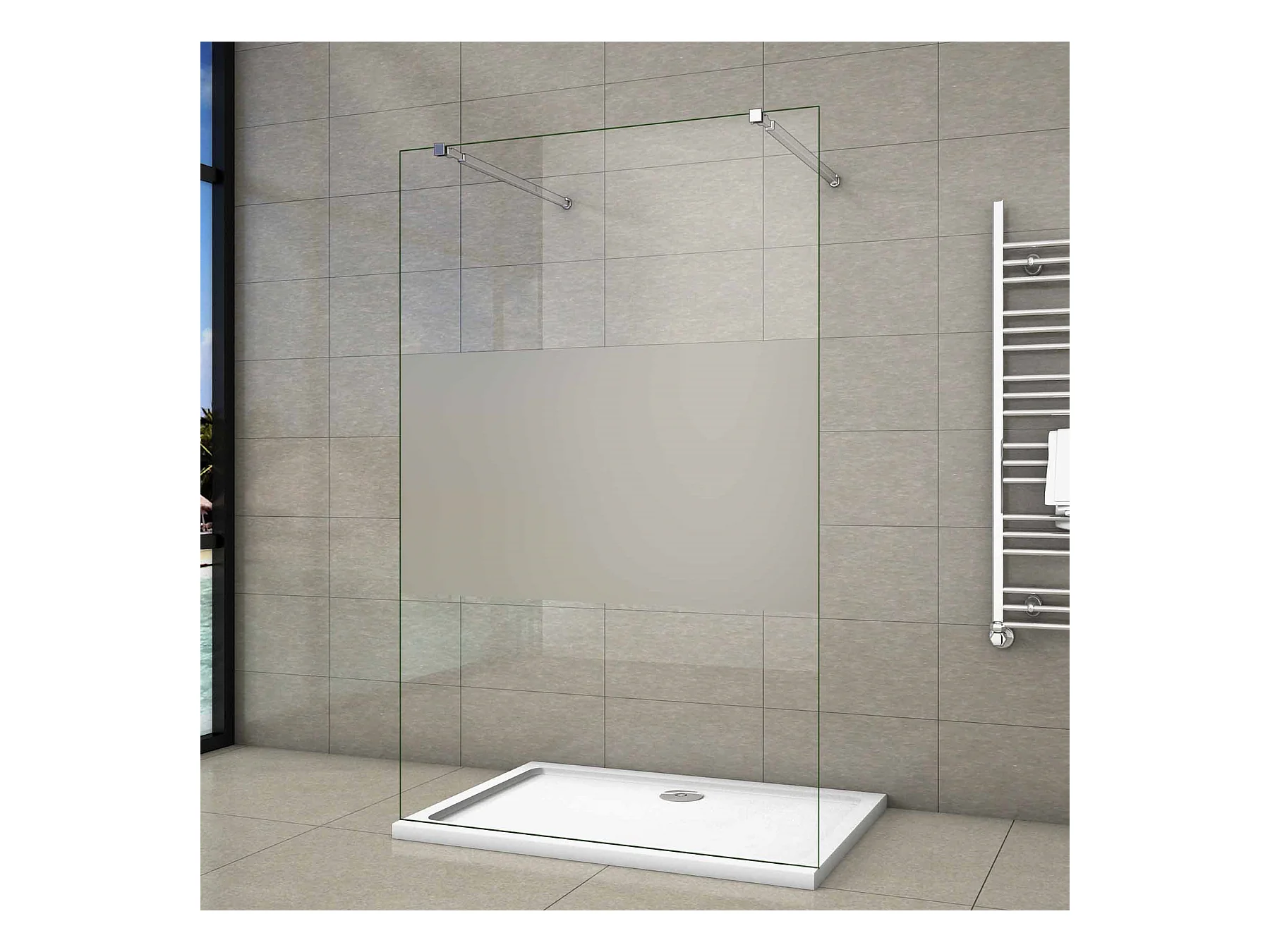 Walk In 10mm Nano ESG Milchglasstreifen Duschabtrennung + 73-120cm Stabilisatorx2 87.7x200cm