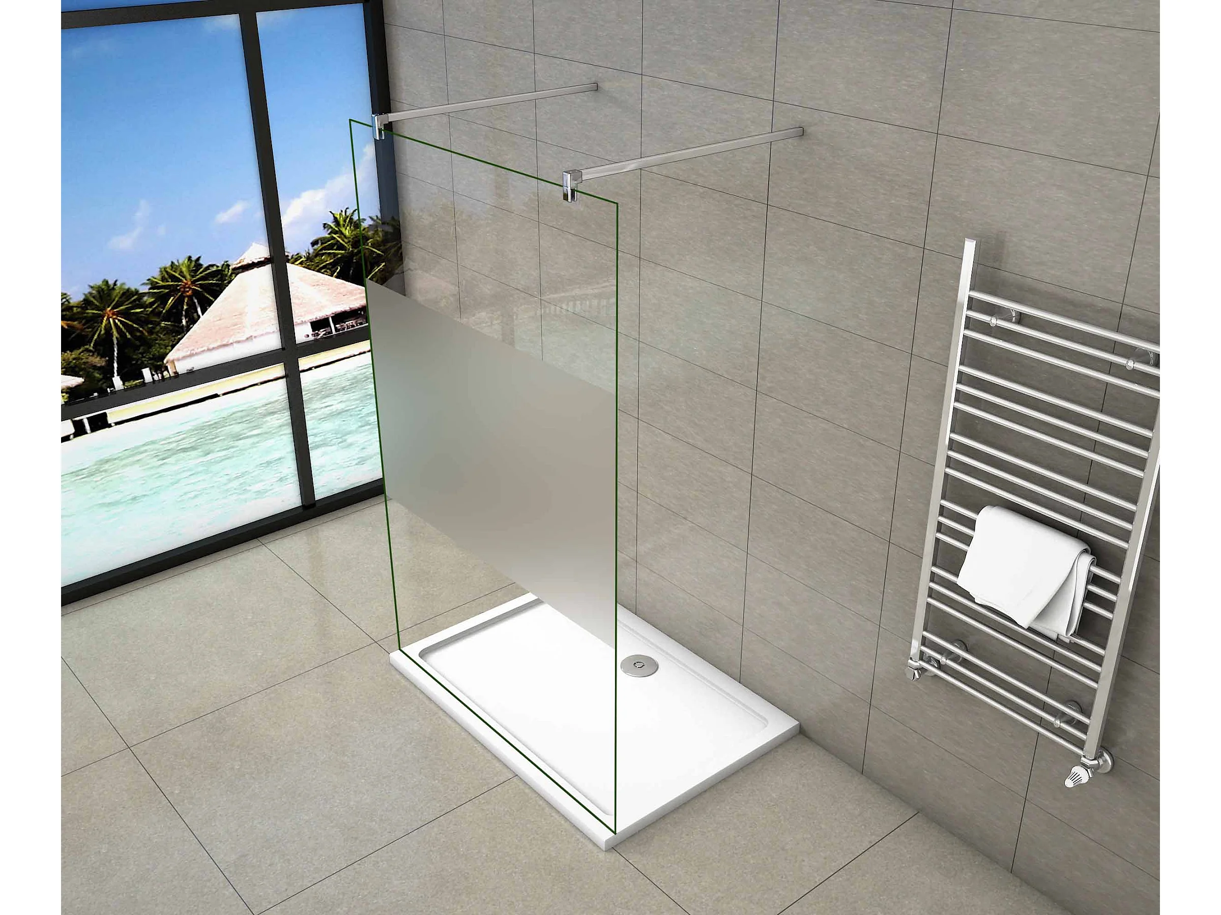 Walk In 10mm Nano ESG Milchglasstreifen Duschabtrennung + F Form:90cm Stabilisatorx2 67.7x200cm