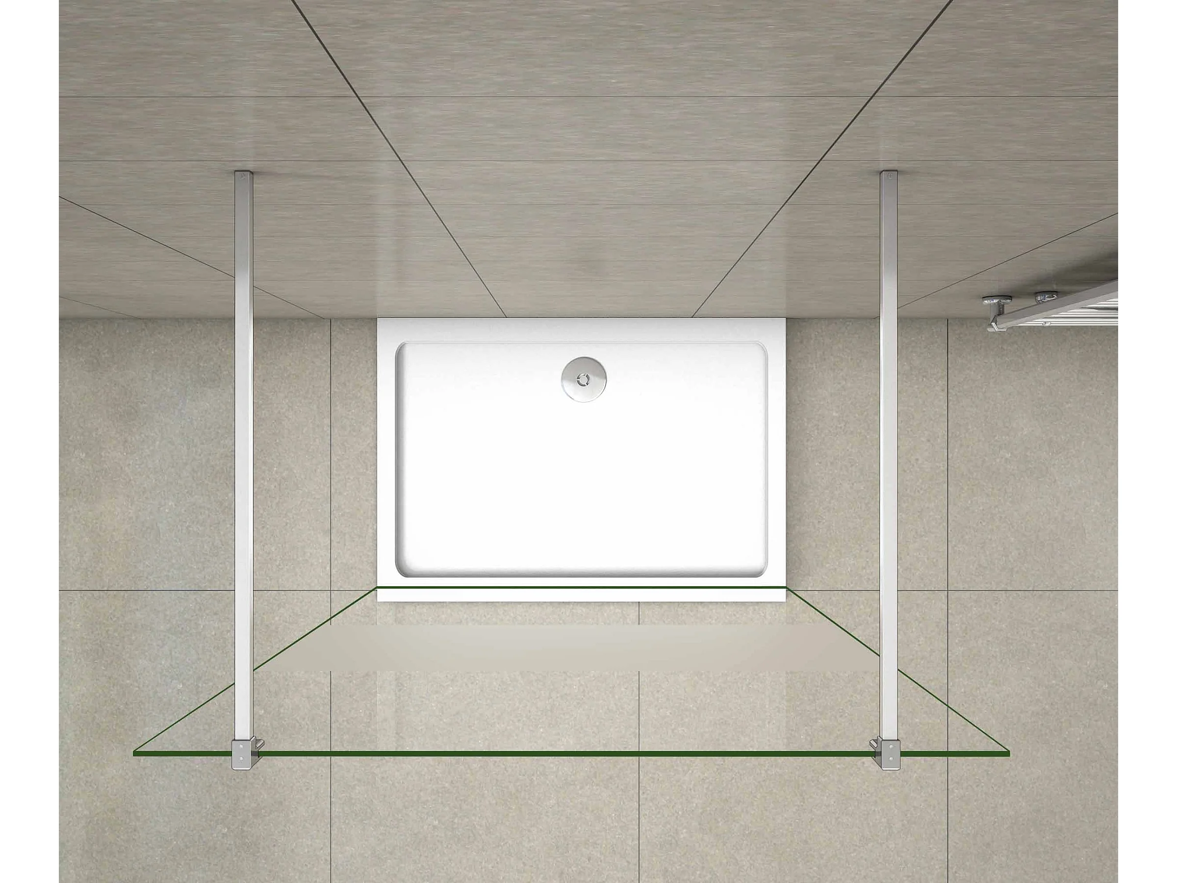 Walk In 8mm Nano ESG Milchglasstreifen Duschabtrennung + F Form:140cm Stabilisatorx2 77.7x200cm