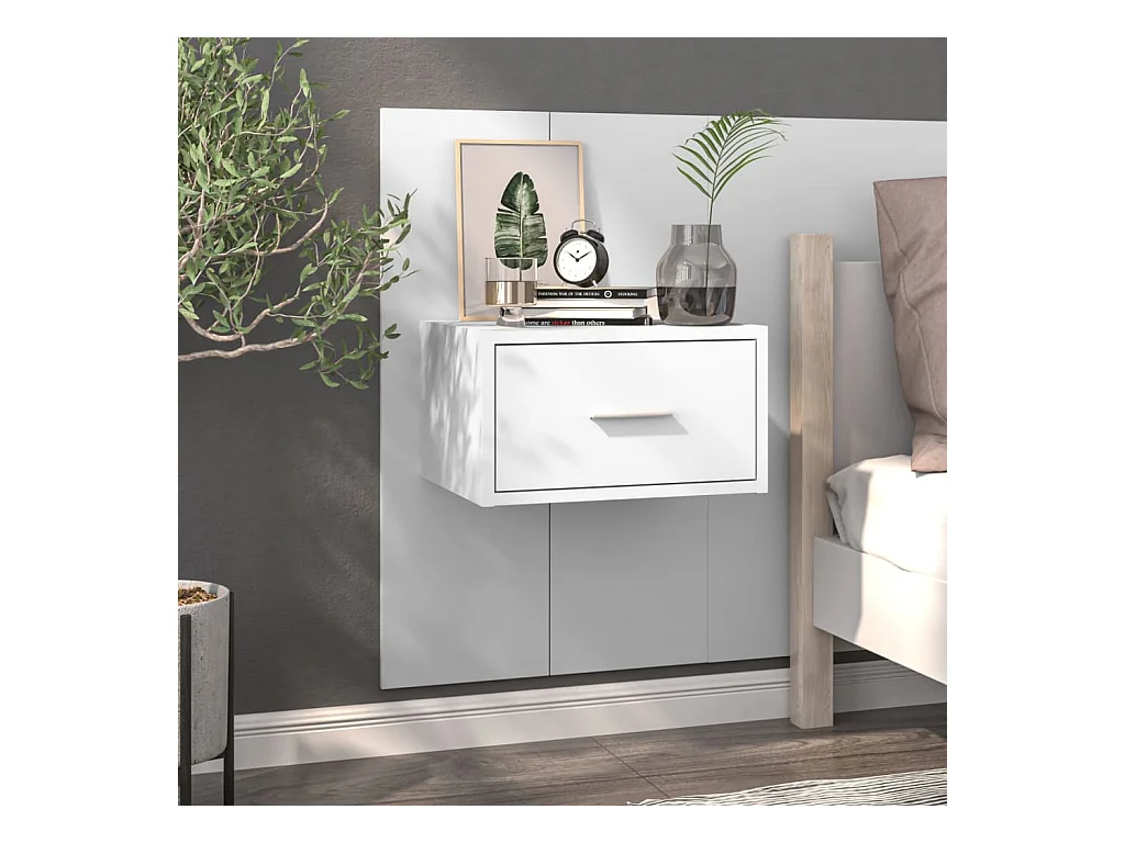 Wand-Nachttisch Nachtschrank Hochglanz-Weiß -RN85817