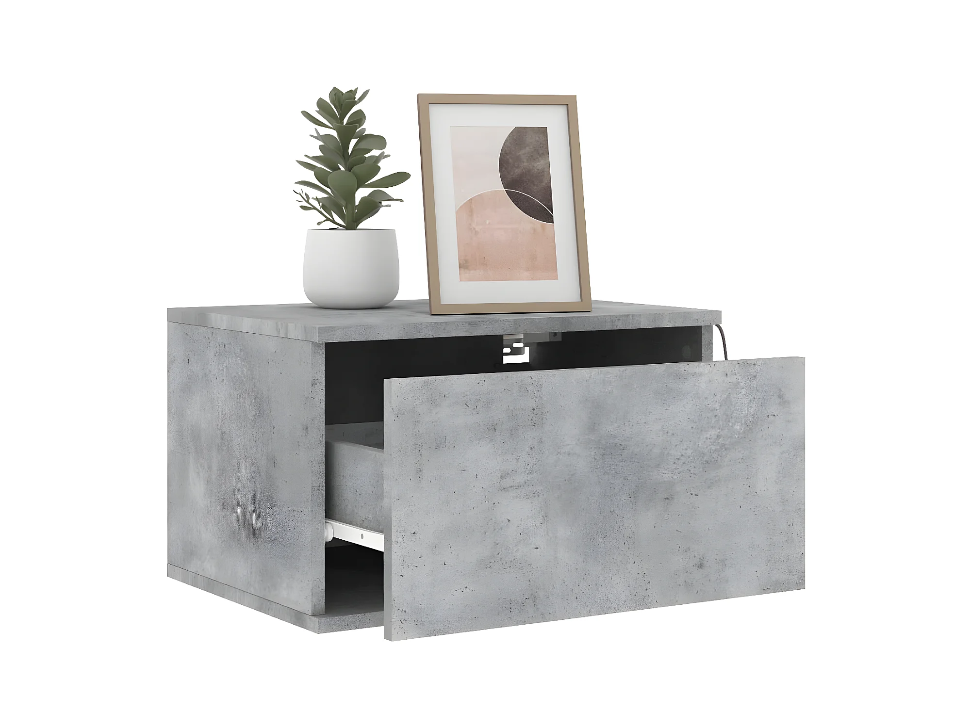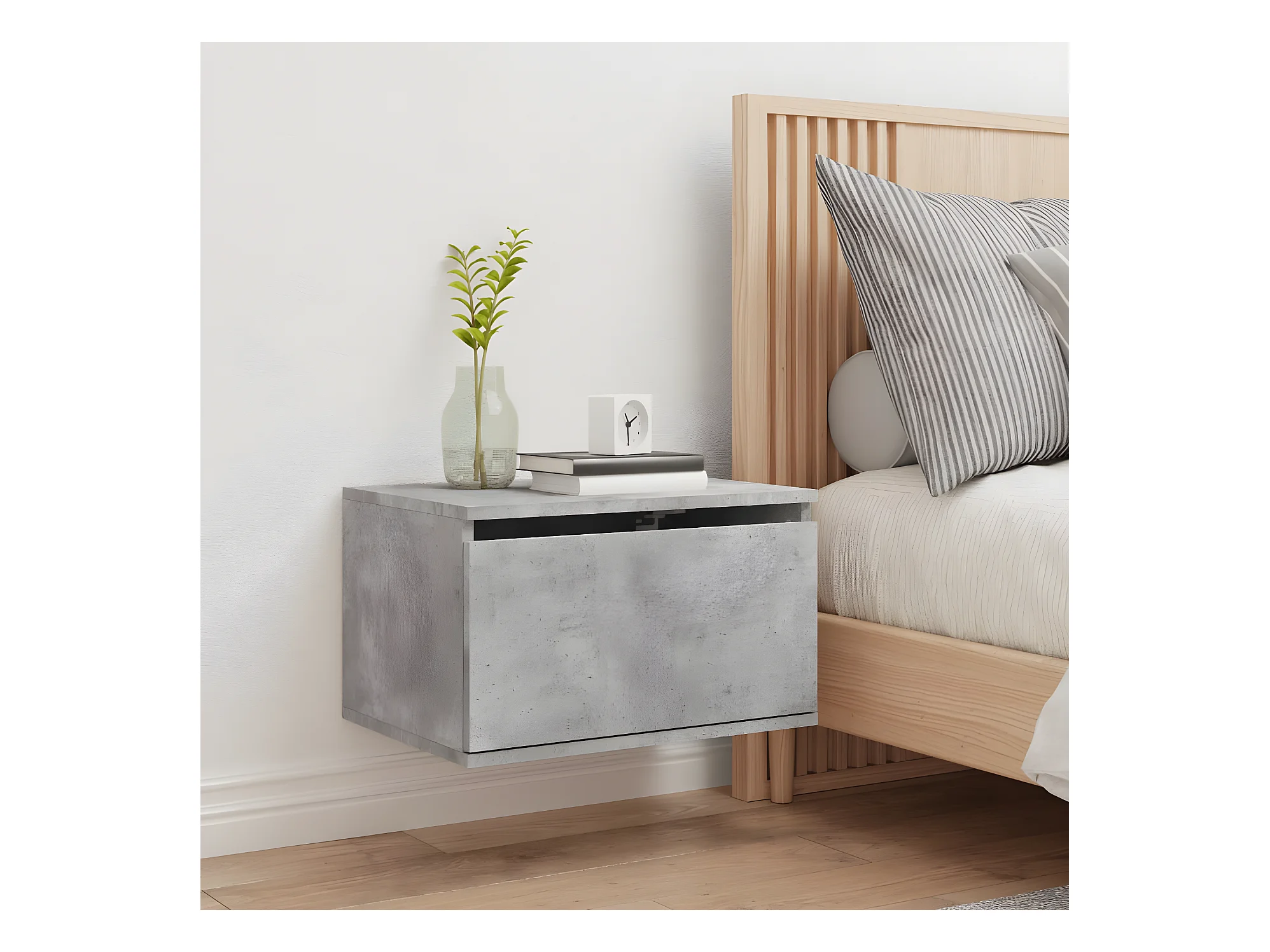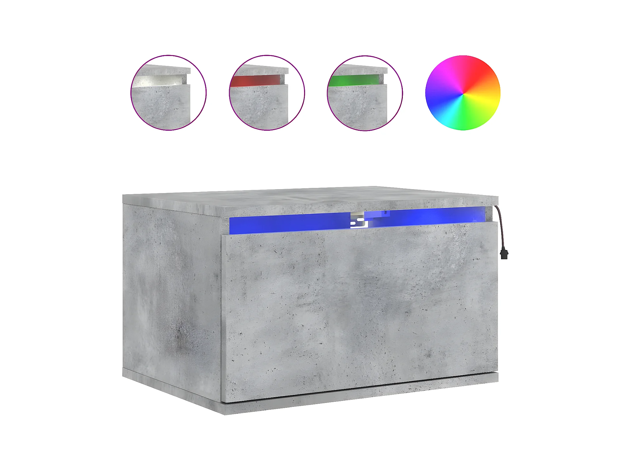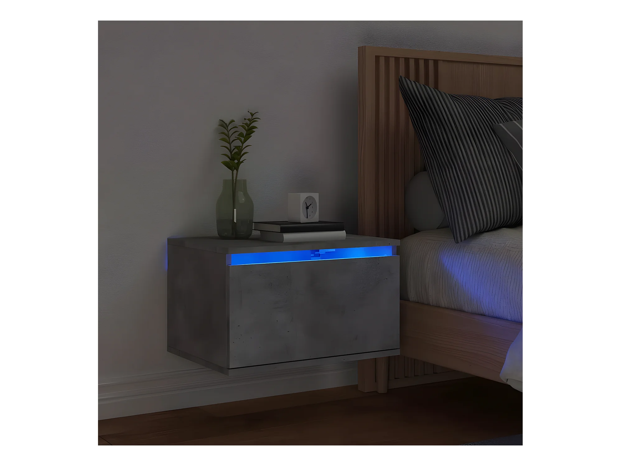 Wand-Nachttisch Nachtschrank mit LED-Leuchten Betongrau -RN69757