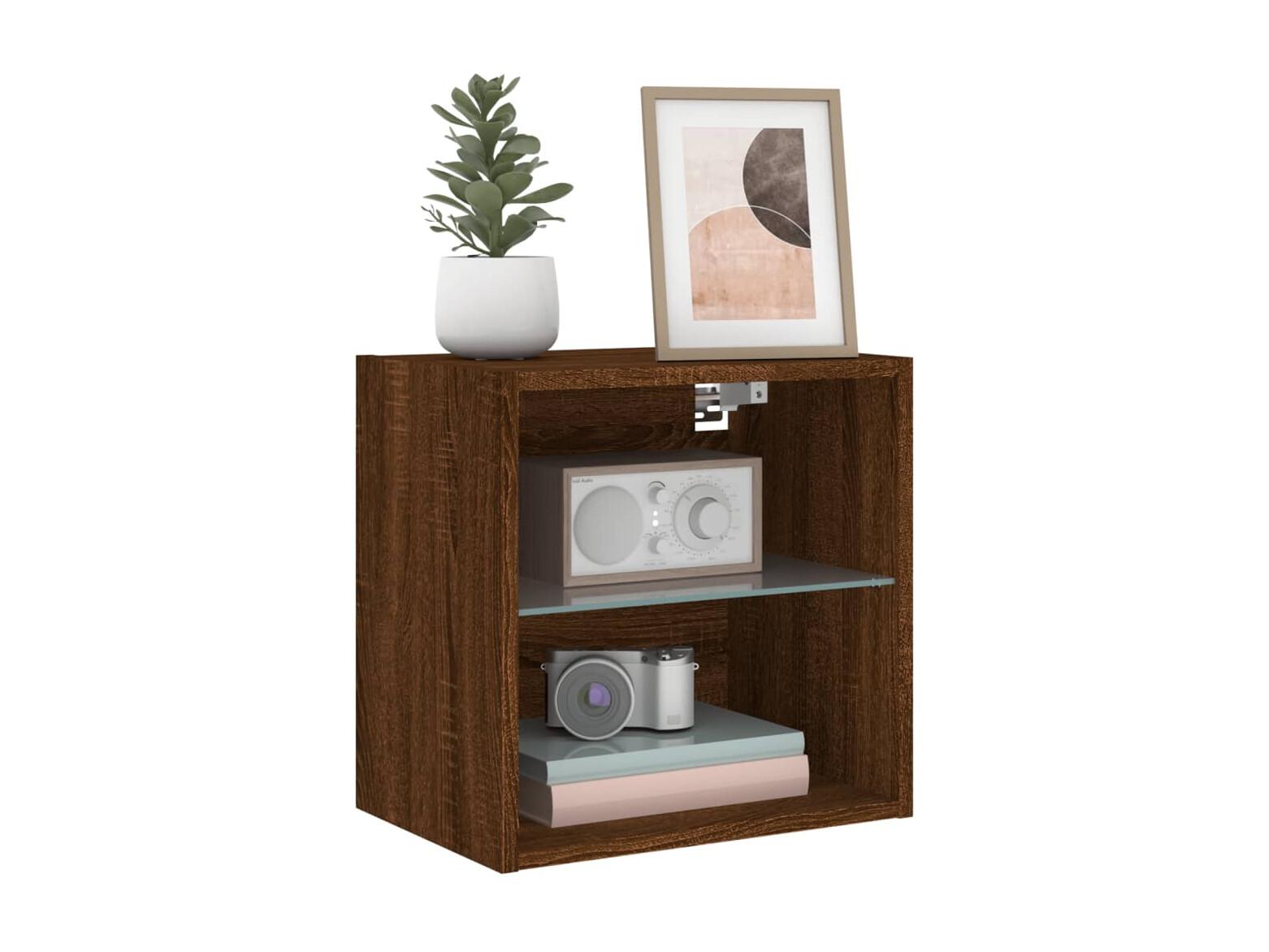 Wand-Nachttisch Nachtschrank mit LED-Leuchten Braun Eichen-Optik -RN56389