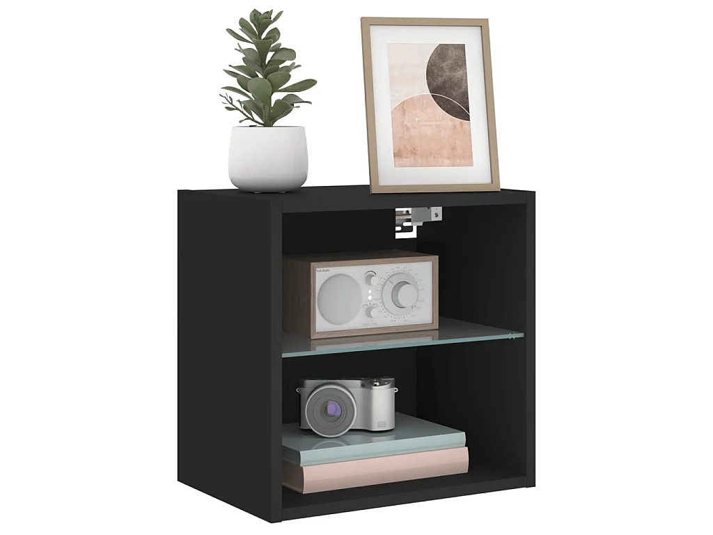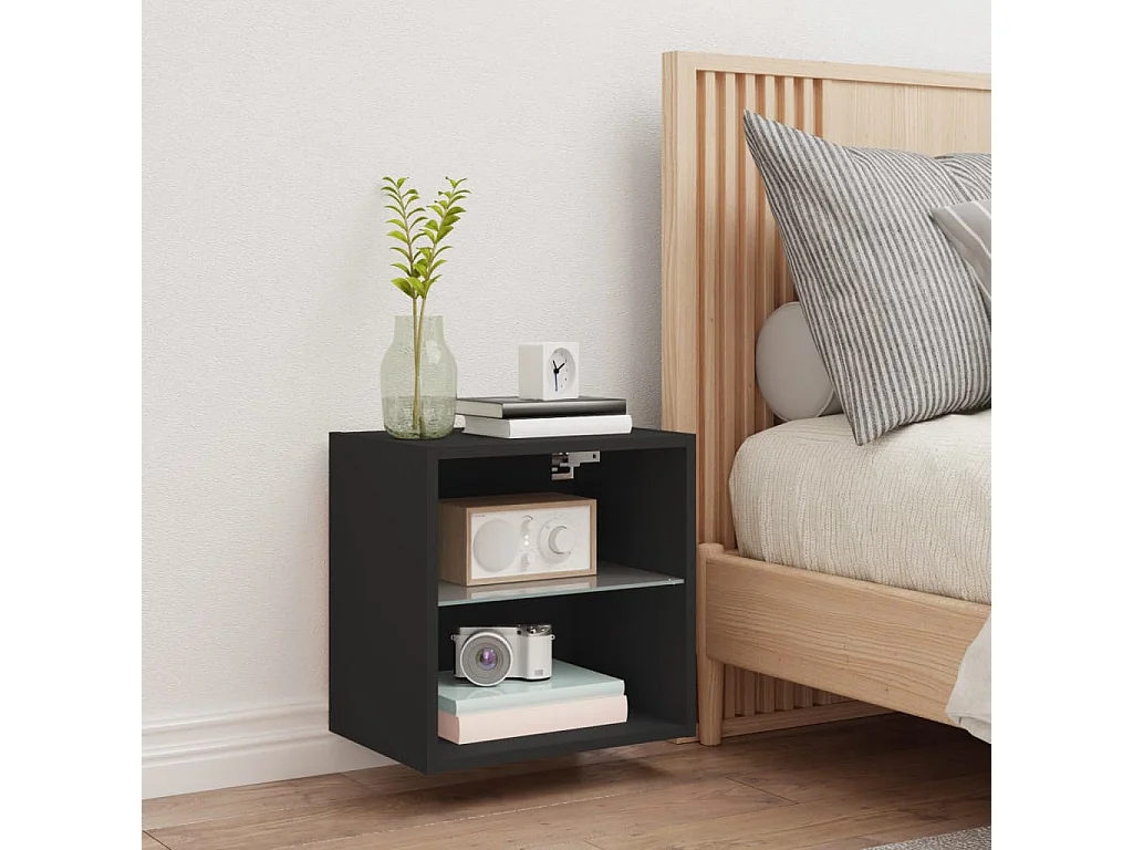 Wand-Nachttisch Nachtschrank mit LED-Leuchten Schwarz -RN75325