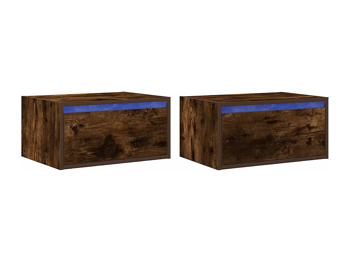 Wand-Nachttische mit LED-Leuchten 2 Stk. Räuchereiche