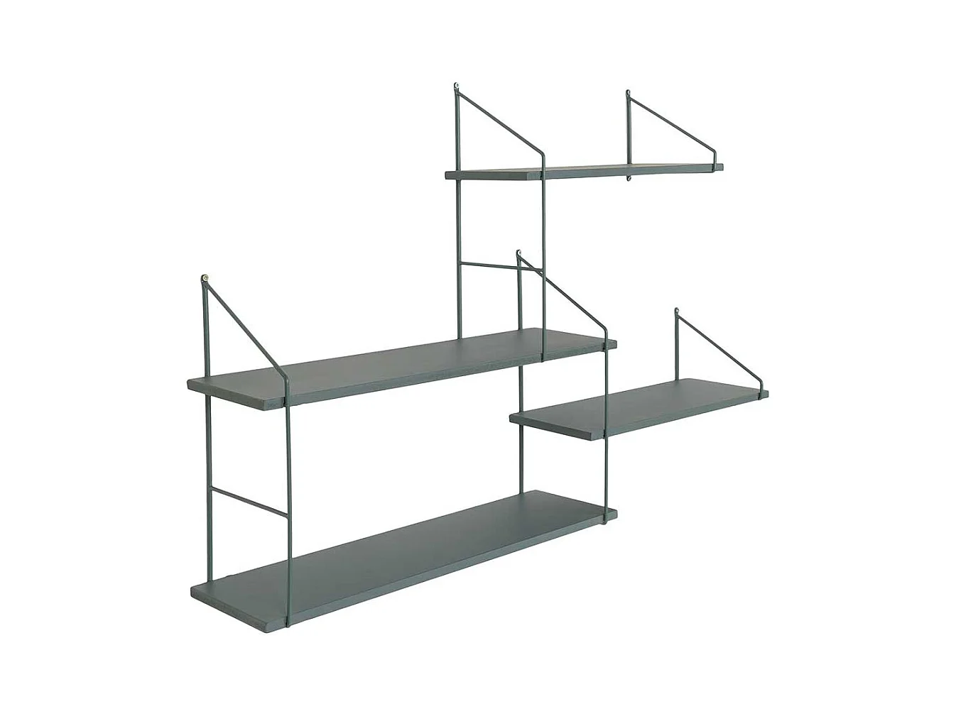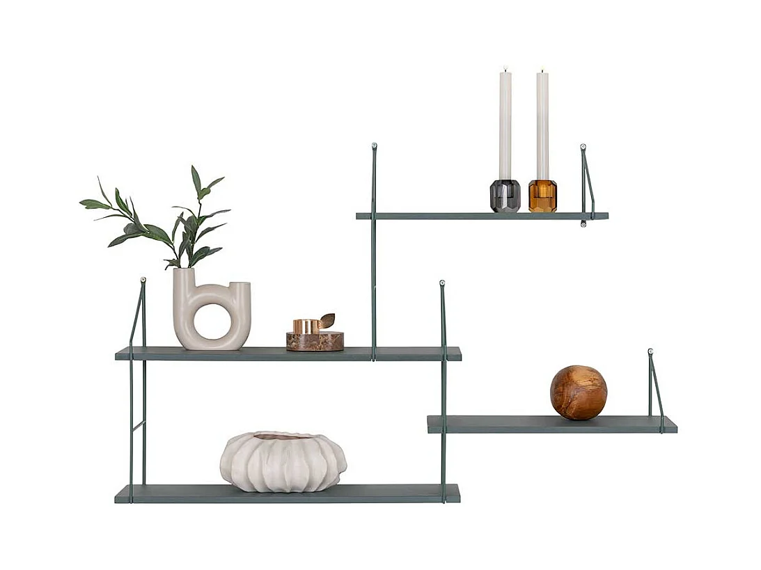 Wand Regal Skandi Design in Dunkelgrün lackiert 62 cm hoch