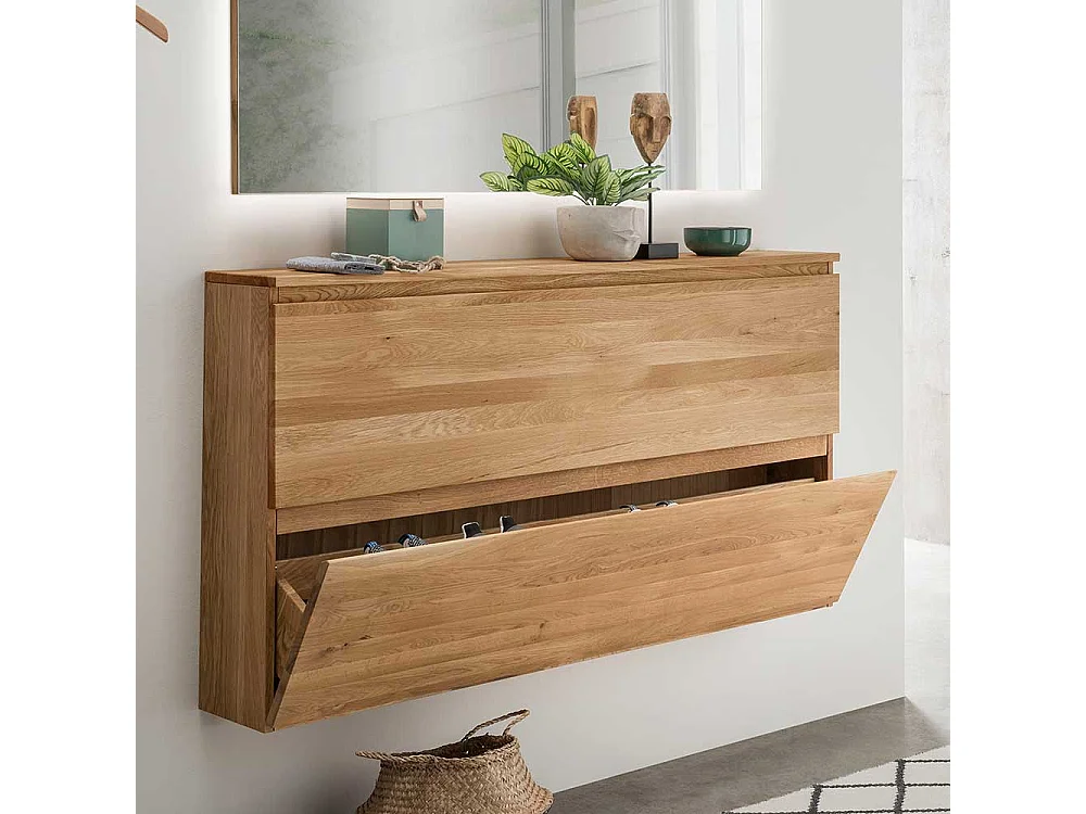 Wand Schuhschrank aus Asteiche Massivholz zwei Schuhwalzen