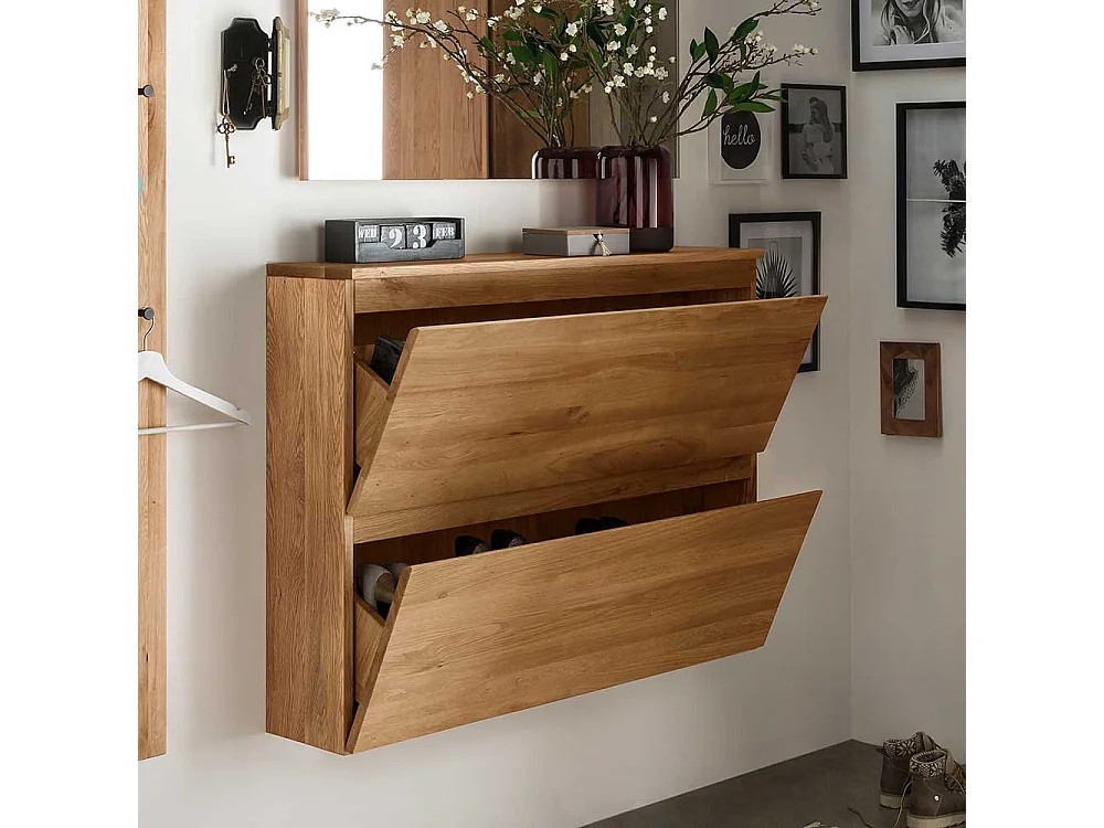 Wand Schuhschrank aus Asteiche Massivholz zwei Schuhwalzen