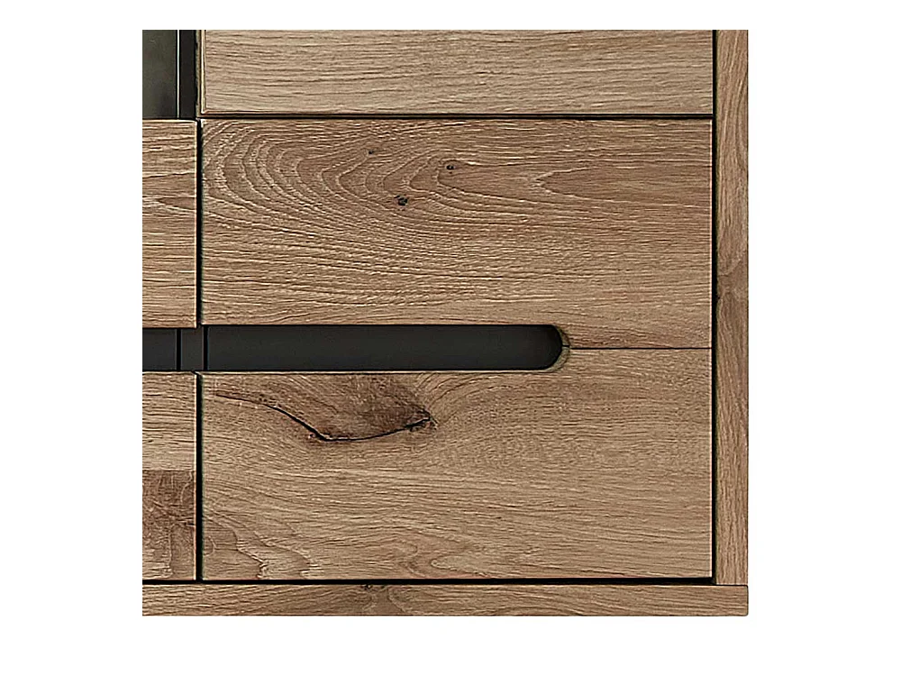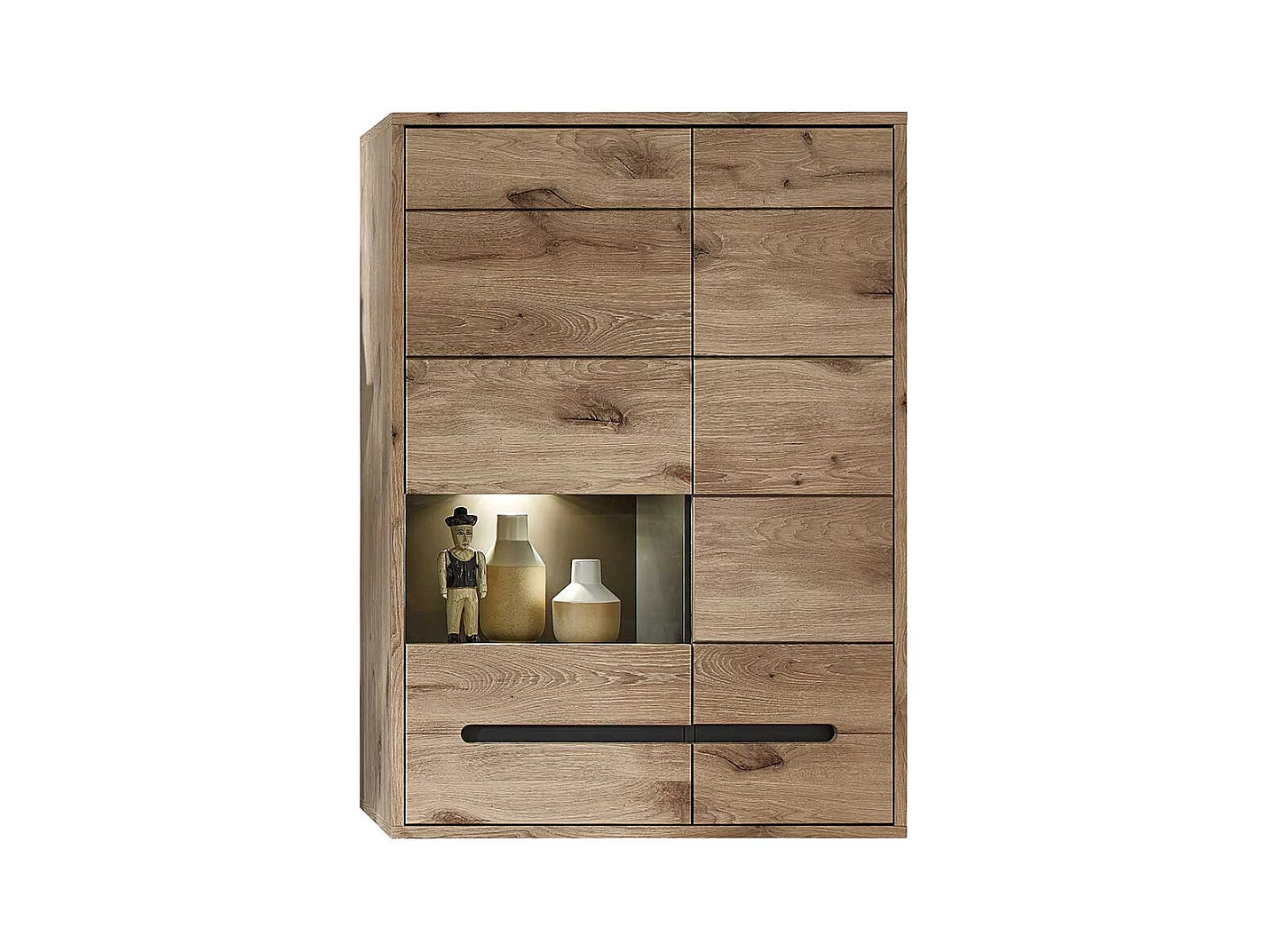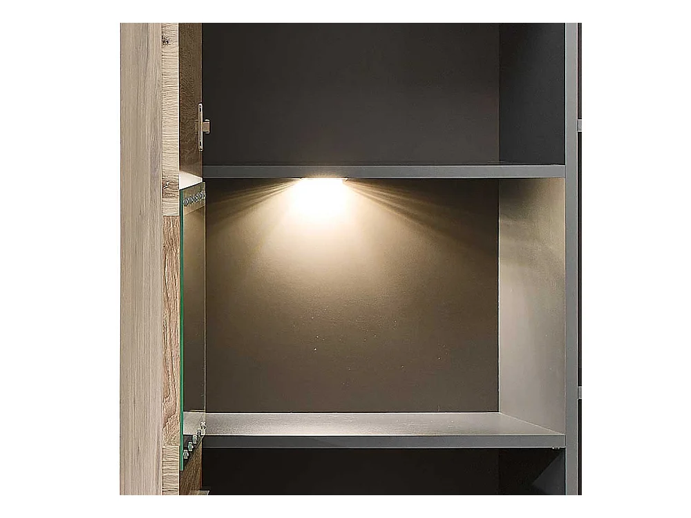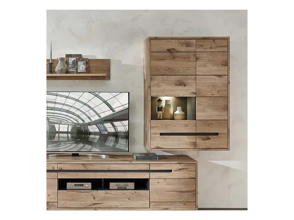 Wand Vitrine Wohnzimmer in Wildeichefarben LED Beleuchtung