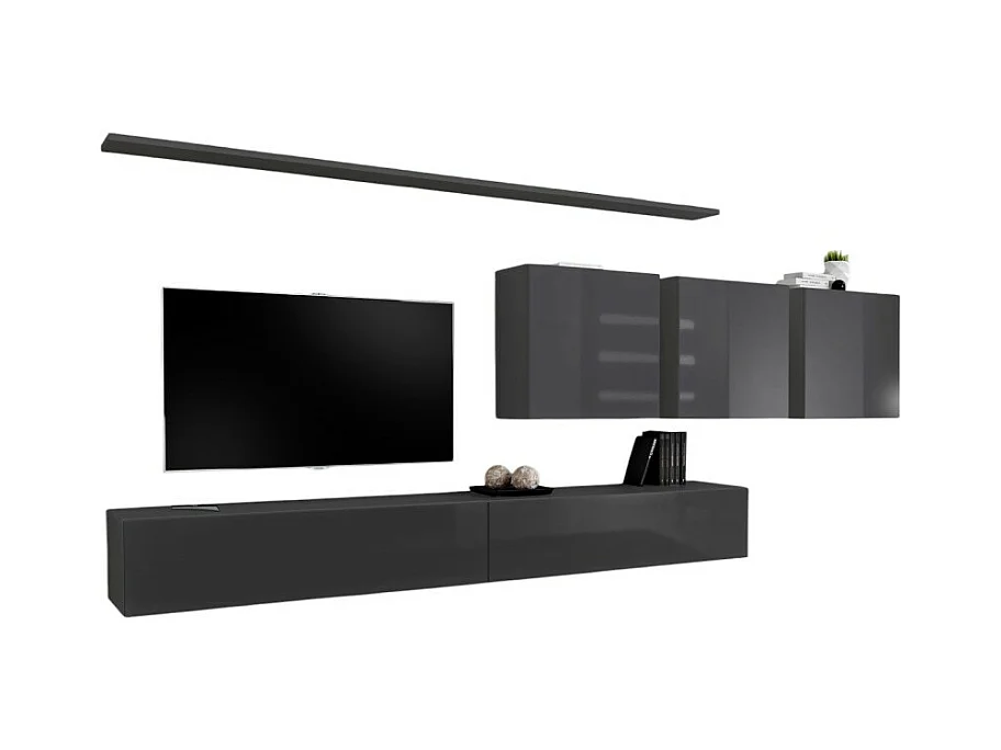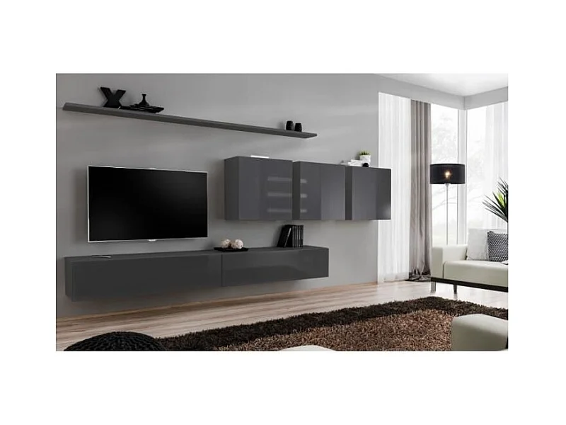 Wand-Wohnzimmerset SWITCH VII Design, in glänzendem Grau.