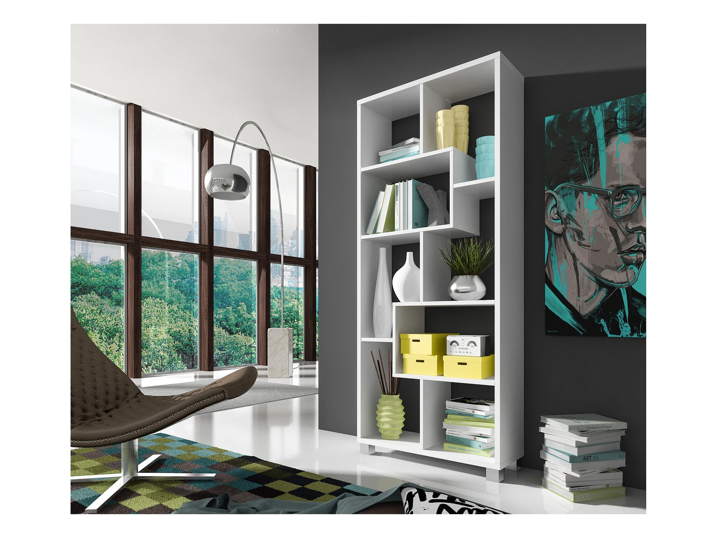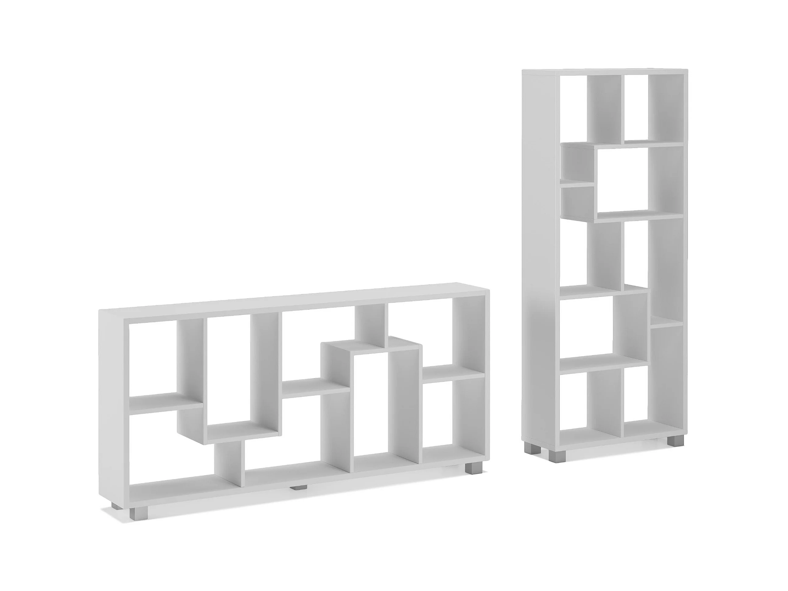 Wandbibliothek, Bücherregal, Bibliothek, 8 Regal Design Wohn, vertikale und horizontale Montage, Weiß Mate, 68,5x161x25cm