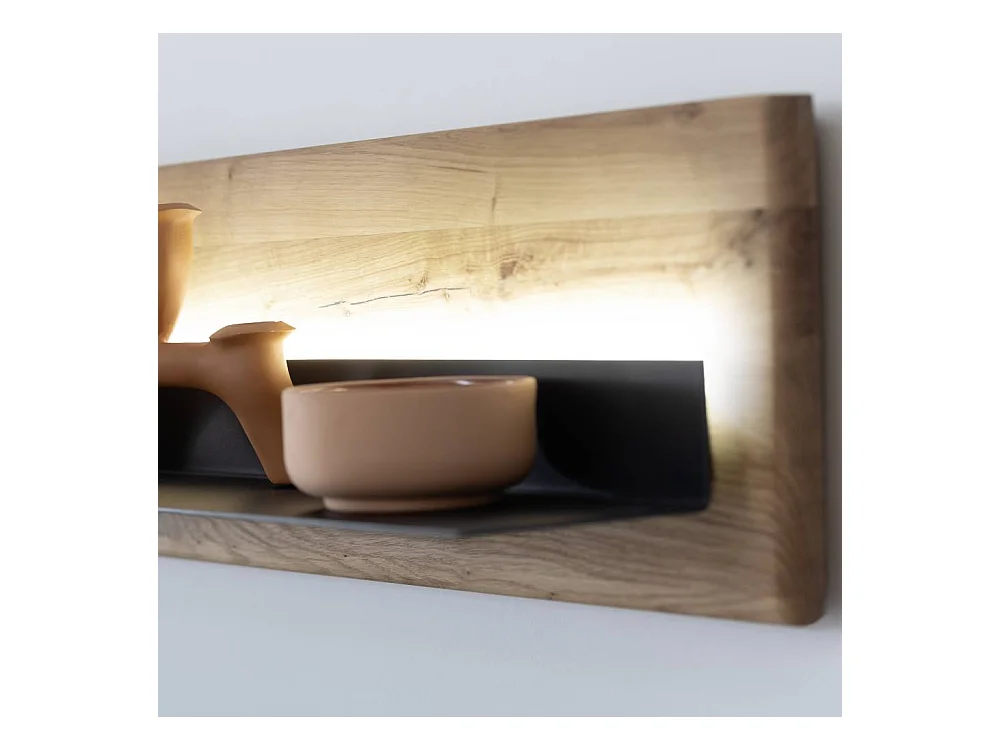 Wandboard Massivholzregal in Anthrazit und Wildeichefarben