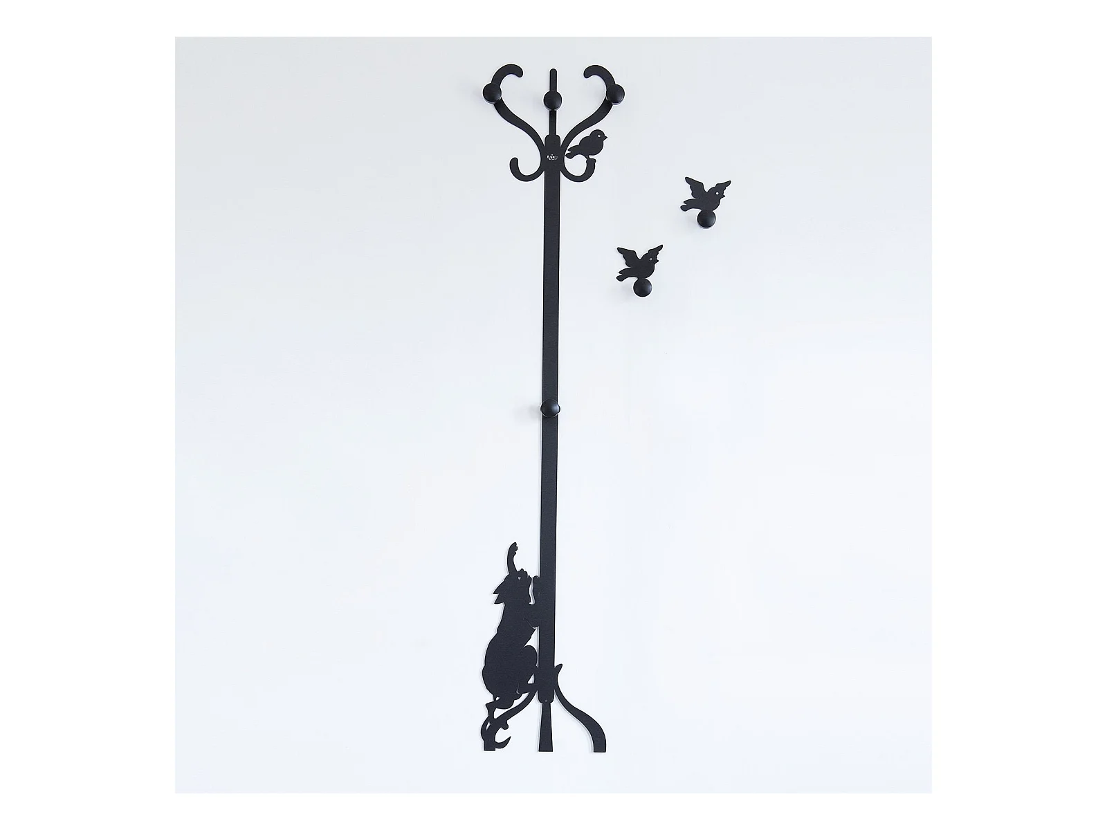 Wandgarderobe Romeo & Vögel – Eisen/Holz, 30x130 cm, kreativ – Made in Italy