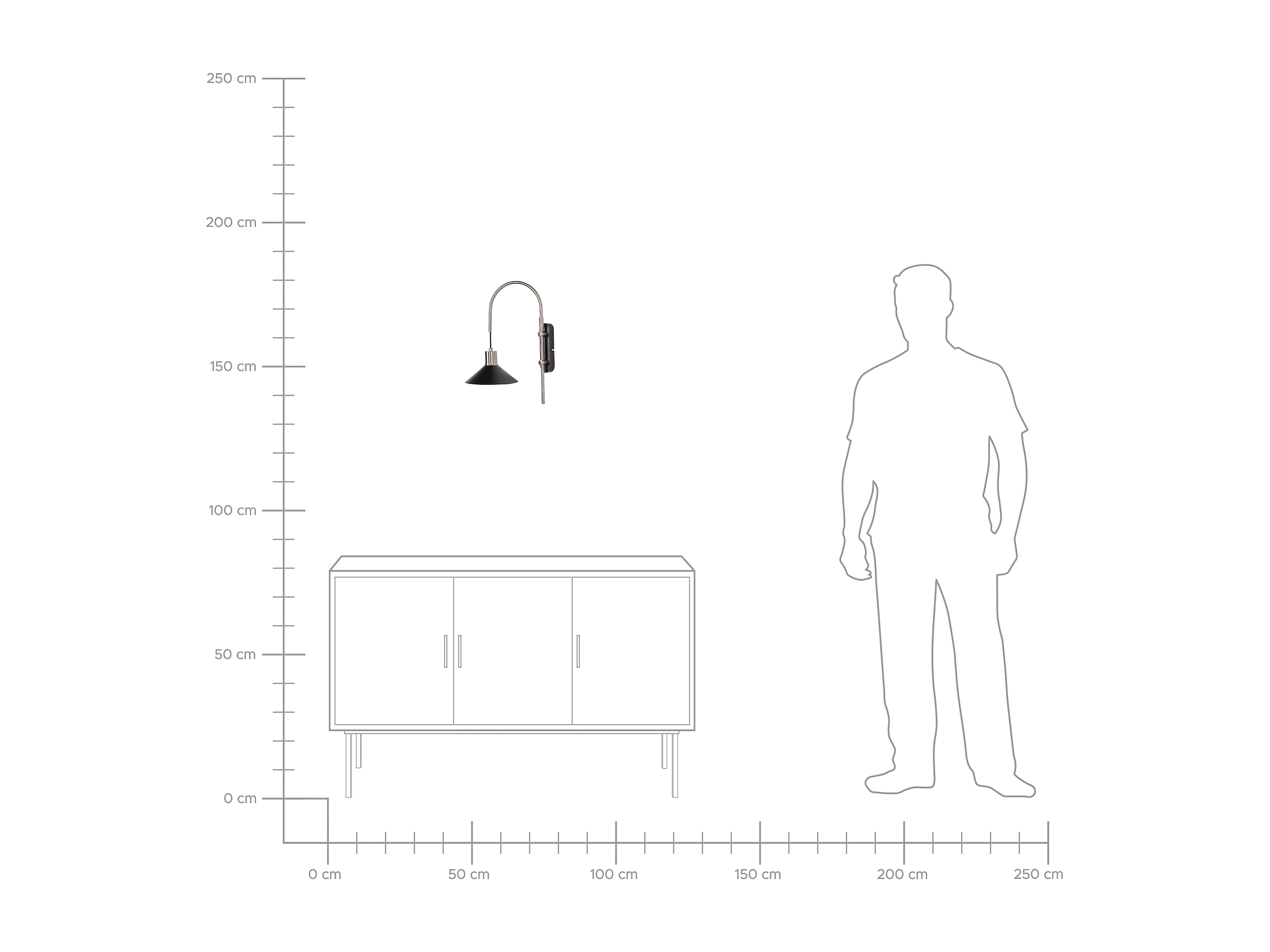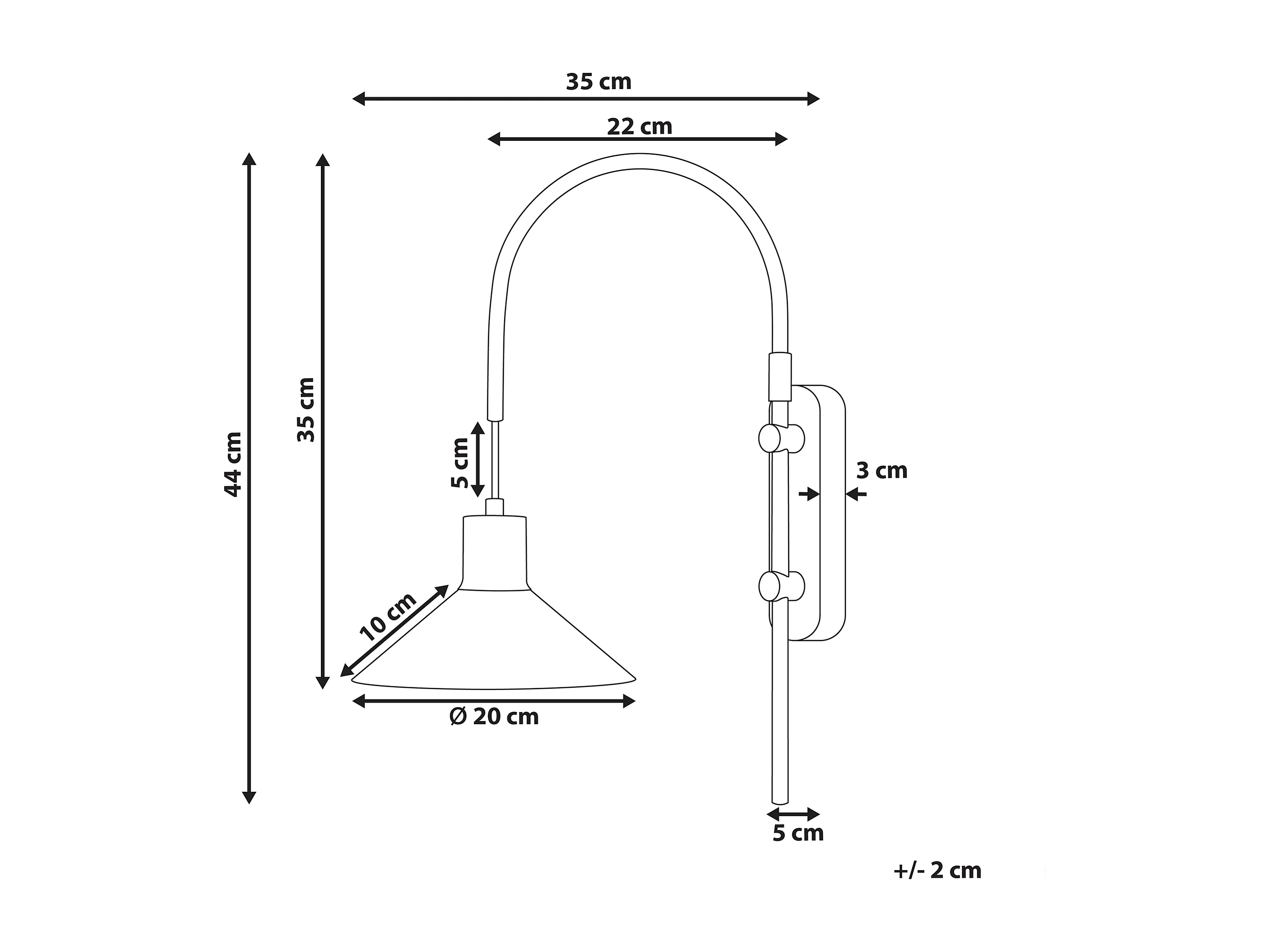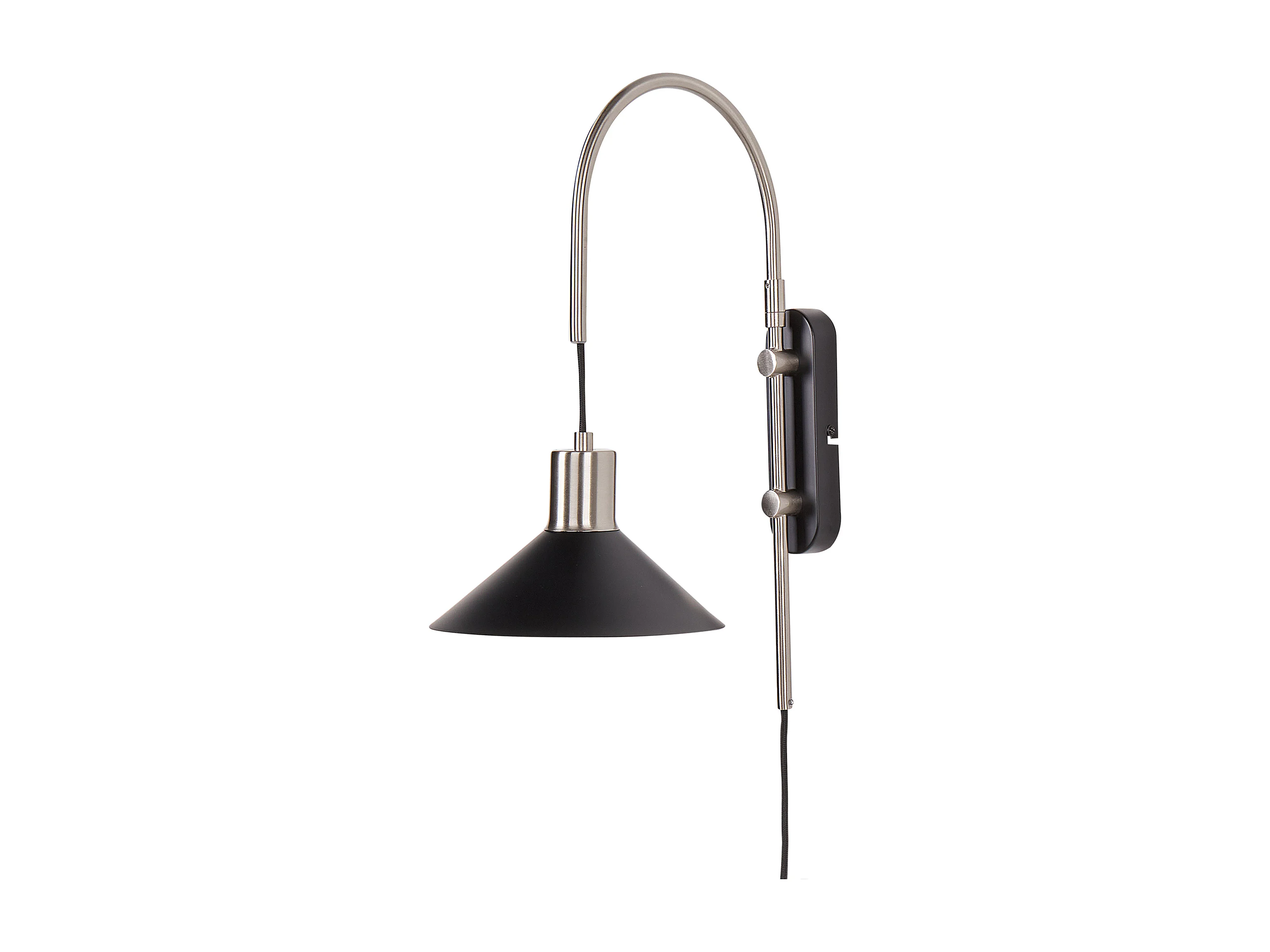 Wandleuchte Metall schwarz/silber Kegelform 1-flammig gebogen mit Schalter Sissa